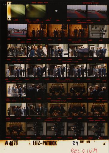 | Keywords: Ford A4878 NLGRF photo contact sheet (1975-05-28)(Gerald Ford Library).jpg  White House Photographic Office WHPO is housed at the Gerald R Ford Presidential Library a branch of the National Archives and Records Administration NARA <br/><br/> This file is a 200 dpi photo contact sheet having images from roll of film A4878 of the August 9 1974 - January 20 1977 Gerald R Ford White House Photographic Office Series A0001-A9999 and B0001-B2886 photographs <br/><br/> The date on the photo contact sheet is the date the roll of film was processed not necessarily the date the photographs were taken See table below for additional details 1975-05-28 Gerald R Ford Presidential Library Image http //www fordlibrarymuseum gov/library/whphotos/A4878_NLGRF jpg A4878_NLGRF jpg from http //www fordlibrarymuseum gov/library/whphotos/19750528whpo pdf White House Photographs May 28 1975 of the http //www fordlibrarymuseum gov/Library/whphotos/whpo asp White House Photographic Collection page White House Photographic Office WHPO - Fitz-Patrick PD-USGov Institution Institution Gerald R Ford Presidential Library Table wikitable sortable + Photo contact sheet A4878 U S President Ford Administration Gerald R Ford Library Frame s Tone Subject proper Subject generic Names Geographic Location Photographer Date - 1-3 Color Fitz-Patrick 1975-05-28 - 4-6 Color Arrival in Brussels Belgium long shots taken from across tarmac; red carpet in foreground; Air Force One in background GRF King Baudoin I Queen Fabiola Betty Ford Honor Guard Crowd Brussels Belgium Zavantem Airport Fitz-Patrick 1975-05-28 - 7-9 Color Trip to Belgium -Photo Opportunity with King and Foreign Minister of Belgium standing talking GRF King Baudoin I Kissinger Renaat van Elslande Brussels Belgium Royal Palace of Belgium - Le Petit Salon Blanc Fitz-Patrick 1975-05-28 - 13-21 Color Trip to Belgium -Following Meeting with Prime Minister of Greece handshaking standing talking embracing GRF Constantine Caramanlis Brussels Belgium American Embassy Residence - Outside Fitz-Patrick 1975-05-29 - 22 Color Trip to Belgium -Prime Minister From Republic of Turkey greeting handshaking GRF Suleyman Demirel Brussels Belgium American Embassy Residence - Outside Fitz-Patrick 1975-05-29 - 23-25 Color Trip to Belgium -Meeting with Prime Minister and Foreign Minister of Republic of Turkey seated near fireplace GRF Suleyman Demirel Brussels Belgium American Embassy Residence - Meeting Room Fitz-Patrick 1975-05-29 - 25 Color Trip to Belgium -Prime Minister From Republic of Turkey handshaking saying goodbye GRF Suleyman Demirel Brussels Belgium American Embassy Residence - Outside Fitz-Patrick 1975-05-29 - 26 Color Trip to Belgium standing talking GRF Kissinger Brussels Belgium American Embassy Residence - Outside Fitz-Patrick 1975-05-29 - 27 Color Trip to Belgium -Following Luncheon Meeting With Chancellor and Foreign Minister of the Federal Republic of Germany handshaking saying goodbye GRF Helmut Schmidt Brussels Belgium American Embassy Residence - Outside Fitz-Patrick 1975-05-29 - 28-31 Color Trip to Belgium -Meeting with Prime Minister of Portugal seated near fireplace GRF Vasco dos Santos Goncalves Brussels Belgium American Embassy Residence - Meeting Room Fitz-Patrick 1975-05-29 - 32-35 Color Trip to Belgium -Following Meeting with Prime Minister of Portugal handshaking saying goodbye GRF Vasco dos Santos Goncalves Brussels Belgium American Embassy Residence - Outside Fitz-Patrick 1975-05-29 - 10-12 Color Trip to Belgium various activities; all not in every frame Police Officers Media Crowd Brussels Belgium American Embassy Residence - Outside Fitz-Patrick 1975-05-29 Gerald R Ford Presidential Library and Museum-cooperation PD-USGov Contact sheets by the Ford White House May 1975  |