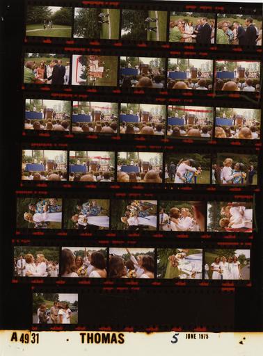 | Keywords: Ford A4931 NLGRF photo contact sheet (1975-06-05)(Gerald Ford Library).jpg White House Photographic Office WHPO is housed at the Gerald R Ford Presidential Library a branch of the National Archives and Records Administration NARA <br/><br/> This file is a 200 dpi photo contact sheet having images from roll of film A4931 of the August 9 1974 - January 20 1977 Gerald R Ford White House Photographic Office Series A0001-A9999 and B0001-B2886 photographs <br/><br/> The date on the photo contact sheet is the date the roll of film was processed not necessarily the date the photographs were taken See table below for additional details 1975-06-05 Gerald R Ford Presidential Library Image http //www fordlibrarymuseum gov/library/whphotos/A4931_NLGRF jpg A4931_NLGRF jpg from http //www fordlibrarymuseum gov/library/whphotos/19750605whpo pdf White House Photographs June 5 1975 of the http //www fordlibrarymuseum gov/Library/whphotos/whpo asp White House Photographic Collection page White House Photographic Office WHPO - Thomas PD-USGov Institution Institution Gerald R Ford Presidential Library Table wikitable sortable + Photo contact sheet A4931 U S President Ford Administration Gerald R Ford Library Frame s Tone Subject proper Subject generic Names Geographic Location Photographer Date - 3A-5A Color walking toward driveway; GRF carrying papers GRF O'Donnell Secret Service Sidewalk Between Oval Office and South Driveway Thomas 1975-06-05 - 6A-8A Color Prior to Holton Arms Commencement Exercise - Susan Ford's High School Graduation -Bethesda Maryland greeting handshaking GRF Headmaster James Lewis Betty Ford Others Bethesda MD Holton Arms School - Grounds Thomas 1975-06-05 - 9A Color Prior to Holton Arms Commencement Exercise - Susan Ford's High School Graduation -Bethesda Maryland walking talking Betty Ford Mike Gayle Ford Clara Powell Others Bethesda MD Holton Arms School - Grounds Thomas 1975-06-05 - 10A-20A Color Holton Arms Commencement Exercise - Susan Ford's High School Graduation -Bethesda Maryland GRF seated; Lewis handing out diplomas Susan receiving diploma in 2nd and 3rd frames; other students in background Headmaster James Lewis Students Bethesda MD Holton Arms School - Amphitheater Thomas 1975-06-05 - 21A-25A Color Holton Arms Commencement Exercise - Susan Ford's High School Graduation -Bethesda Maryland embracing standing side by side; SF holding flowers Susan Ford Clara Powell Bethesda MD Holton Arms School - Amphitheater Thomas 1975-06-05 - 26A-28A Color Holton Arms Commencement Exercise - Susan Ford's High School Graduation -Bethesda Maryland embracing; SF holding flowers Betty Ford Susan Ford Bethesda MD Holton Arms School - Amphitheater Thomas 1975-06-05 - 29A-33A Color Holton Arms Commencement Exercise - Susan Ford's High School Graduation -Bethesda Maryland standing talking posing; all not in every frame Susan Ford Graduates Guests Bethesda MD Holton Arms School - Grounds Thomas 1975-06-05 Gerald R Ford Presidential Library and Museum-cooperation PD-USGov Contact sheets by the Ford White House June 1975 |