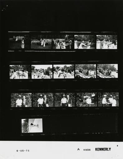 Keywords: Ford A4936 NLGRF photo contact sheet (1975-06-05)(Gerald Ford Library).jpg White House Photographic Office WHPO is housed at the Gerald R Ford Presidential Library a branch of the National Archives and Records Administration NARA <br/><br/> This file is a 200 dpi photo contact sheet having images from roll of film A4936 of the August 9 1974 - January 20 1977 Gerald R Ford White House Photographic Office Series A0001-A9999 and B0001-B2886 photographs <br/><br/> The date on the photo contact sheet is the date the roll of film was processed not necessarily the date the photographs were taken See table below for additional details 1975-06-05 Gerald R Ford Presidential Library Image http //www fordlibrarymuseum gov/library/whphotos/A4936_NLGRF jpg A4936_NLGRF jpg from http //www fordlibrarymuseum gov/library/whphotos/19750605whpo pdf White House Photographs June 5 1975 of the http //www fordlibrarymuseum gov/Library/whphotos/whpo asp White House Photographic Collection page White House Photographic Office WHPO <br/> Creator David Hume Kennerly PD-USGov Institution Institution Gerald R Ford Presidential Library Table wikitable sortable + Photo contact sheet A4936 U S President Ford Administration Gerald R Ford Library Frame s Tone Subject proper Subject generic Names Geographic Location Photographer Date - 3-5 BW Holton Arms Commencement Exercise - Susan Ford's High School Graduation -Bethesda Maryland walking from stage; moving toward camera; carrying flowers Susan Ford Graduates Bethesda MD Holton Arms School - Amphitheater Kennerly 1975-06-05 - 6-10 BW Holton Arms Commencement Exercise - Susan Ford's High School Graduation -Bethesda Maryland embracing laughing celebrating; all not in every frame Susan Ford Golubin Twins Graduates Bethesda MD Holton Arms School - Amphitheater Kennerly 1975-06-05 - 11-12 BW Following Holton Arms Commencement Exercise - Susan Ford's High School Graduation -Bethesda Maryland standing near limousine; crowd surrounding vehicle; GRF waving in second frame GRF O'Donnell Crowd Others Bethesda MD Holton Arms School - Grounds Kennerly 1975-06-05 - 13-17 BW Following Holton Arms Commencement Exercise - Susan Ford's High School Graduation -Bethesda Maryland standing posing; all not in every frame; Betty Ford handshaking in last frame GRF Police Officers Bethesda MD Holton Arms School - Grounds Kennerly 1975-06-05 - 18 BW walking carrying jacket; sunglasses Unidentified Woman South Driveway Kennerly 1975-06-05 Gerald R Ford Presidential Library and Museum-cooperation PD-USGov Contact sheets by the Ford White House June 1975 Photographs by David Hume Kennerly from 1975 |