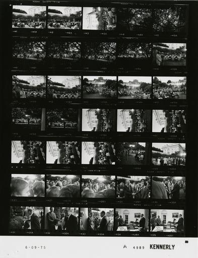Keywords: Ford A4989 NLGRF photo contact sheet (1975-06-09)(Gerald Ford Library).jpg White House Photographic Office WHPO is housed at the Gerald R Ford Presidential Library a branch of the National Archives and Records Administration NARA <br/><br/> This file is a 200 dpi photo contact sheet having images from roll of film A4989 of the August 9 1974 - January 20 1977 Gerald R Ford White House Photographic Office Series A0001-A9999 and B0001-B2886 photographs <br/><br/> The date on the photo contact sheet is the date the roll of film was processed not necessarily the date the photographs were taken See table below for additional details 1975-06-09 Gerald R Ford Presidential Library Image http //www fordlibrarymuseum gov/library/whphotos/A4989_NLGRF jpg A4989_NLGRF jpg from http //www fordlibrarymuseum gov/library/whphotos/19750609whpo pdf White House Photographs June 9 1975 of the http //www fordlibrarymuseum gov/Library/whphotos/whpo asp White House Photographic Collection page White House Photographic Office WHPO <br/> Creator David Hume Kennerly PD-USGov Institution Institution Gerald R Ford Presidential Library Table wikitable sortable + Photo contact sheet A4989 U S President Ford Administration Gerald R Ford Library Frame s Tone Subject proper Subject generic Names Geographic Location Photographer Date - 30A-33A BW Following 15th Press Conference -Discussion on The Report of the Commission of CIA Activities Within the U S greeting handshaking near Colonnade; Buchen and R Hills in last two frames GRF Crowd Young Boy Buchen Rod Hills Rose Garden Kennerly 1975-06-09 - 1A-24A BW 15th Press Conference -Discussion on The Report of the Commission of CIA Activities Within the U S GRF at podium speaking; various angles and distances; illuminated by television and flood lights GRF Media Rose Garden Kennerly 1975-06-09 - 25A BW Following 15th Press Conference Discussion on The Report of the Commission of CIA Activities Within the U S view of backs of media surrounding podium Media Rose Garden Kennerly 1975-06-09 - 26A-29A BW Following 15th Press Conference Discussion on The Report of the Commission of CIA Activities Within the U S handshaking GRF Crowd Media Others Rose Garden Kennerly 1975-06-09 - 34A-35A BW standing talking; chart with photos on desk GRF Rumsfeld Unidentified Man Oval Office Kennerly 1975-06-09 Gerald R Ford Presidential Library and Museum-cooperation PD-USGov Contact sheets by the Ford White House June 1975 Photographs by David Hume Kennerly from 1975 |