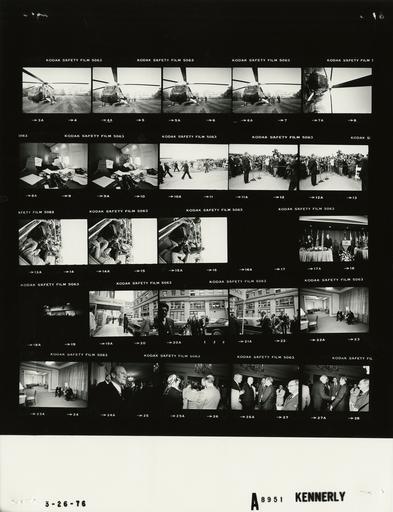 | Keywords: Ford A8951 NLGRF photo contact sheet (1976-03-26)(Gerald Ford Library).jpg White House Photographic Office WHPO is housed at the Gerald R Ford Presidential Library a branch of the National Archives and Records Administration NARA <br/><br/> This file is a 200 dpi photo contact sheet having images from roll of film A8951 of the August 9 1974 - January 20 1977 Gerald R Ford White House Photographic Office Series A0001-A9999 and B0001-B2886 photographs <br/><br/> The date on the photo contact sheet is the date the roll of film was processed not necessarily the date the photographs were taken See table below for additional details 1976-03-26 Gerald R Ford Presidential Library Image http //www fordlibrarymuseum gov/library/whphotos/A8951_NLGRF jpg A8951_NLGRF jpg from http //www fordlibrarymuseum gov/library/whphotos/19760326whpo pdf White House Photographs March 26 1976 of the http //www fordlibrarymuseum gov/Library/whphotos/whpo asp White House Photographic Collection page White House Photographic Office WHPO <br/> Creator David Hume Kennerly PD-USGov Institution Institution Gerald R Ford Presidential Library Table wikitable sortable + Photo contact sheet A8951 U S President Ford Administration Gerald R Ford Library Frame s Tone Subject proper Subject generic Names Geographic Location Photographer Date - 4-8 BW Campaign Trip to California; Departure for; Marine One Marine One aircraft standing on grass camera facing nose of helicopter; GRF approaching ascending ramp Marine One Military; GRF Pontius South Lawn Kennerly 1976-03-26 - 9-10 BW Campaign Trip to California-White House Staff Aboard Air Force One seated on plane; cigarettes candies and foot on table handwritten note Condemned resting on foot O'Donnell Air Force One Kennerly 1976-03-26 - 11-13 BW Campaign Trip to California; Airport Arrival; Q A Session with Press - San Francisco California GRF walking across tarmac;; standing at microphone in front of roped in press GRF Secret Service Media O'Donnell San Francisco CA San Francisco International Airport Kennerly 1976-03-26 - 14-16 BW Campaign Trip to California; Airport Departure; Motorcade; President's Personal Physician GRF standing by limousine in background; Secret Service and Lukash in convertible limousine in foreground GRF Secret Service Police Officers Lukash San Francisco CA San Francisco International Airport Kennerly 1976-03-26 - 17 BW Kennerly 1976-03-26 - 18-19 BW Campaign Trip to California; 27th Annual Meeting of American Textile Manufactuers Institute; Remarks - San Francisco California standing on platform applauding; long and mid range views; all not shown; Textiles Our First Great Industry 1776-1976 banner GRF John M Hamrick Robert Timmerman F Sadler Love James Finley Robert Jackson Ray Shockley San Francisco CA Fairmont Hotel Kennerly 1976-03-26 - 20-22 BW Campaign Trip to California-California President Ford Committee PFC Fundraising Luncheon-Hotel Arrival; Motorcade GRF walking from limousine to entrance; crowd standing in windows of building across the street GRF Secret Service Lukash; Crowd San Francisco CA Sheraton Palace Hotel Kennerly 1976-03-26 - 23-24 BW Campaign Trip to California-California President Ford Committee PFC Fundraising Luncheon-Prior to;; Luncheon Chairman Board Chairman of Hewlett-Packard standing seated; talking GRF David Packard San Francisco CA Sheraton Palace Hotel -Presidential Suite Kennerly 1976-03-26 - 25 BW Campaign Trip to California-California President Ford Committee PFC Fundraising Luncheon-Private Reception prior to close up 3/4 view smiling as entering receiving applause GRF San Francisco CA Sheraton Palace Hotel -Presidential Suite Kennerly 1976-03-26 - 26-28 BW Campaign Trip to California-California President Ford Committee PFC Fundraising Luncheon-Private Reception prior to mingling GRF Guests San Francisco CA Sheraton Palace Hotel -Presidential Suite Kennerly 1976-03-26 Gerald R Ford Presidential Library and Museum-cooperation PD-USGov Contact sheets by the Ford White House March 1976 Photographs by David Hume Kennerly from 1976 |