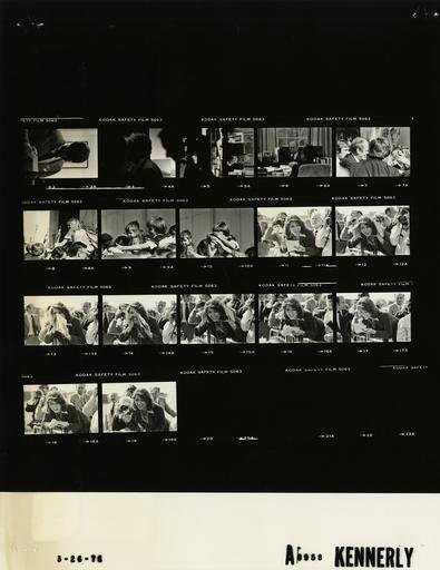 Keywords: Ford A8958 NLGRF photo contact sheet (1976-03-24)(Gerald Ford Library).jpg White House Photographic Office WHPO is housed at the Gerald R Ford Presidential Library a branch of the National Archives and Records Administration NARA <br/><br/> This file is a 200 dpi photo contact sheet having images from roll of film A8958 of the August 9 1974 - January 20 1977 Gerald R Ford White House Photographic Office Series A0001-A9999 and B0001-B2886 photographs <br/><br/> The date on the photo contact sheet is the date the roll of film was processed not necessarily the date the photographs were taken See table below for additional details 1976-03-24 Gerald R Ford Presidential Library Image http //www fordlibrarymuseum gov/library/whphotos/A8958_NLGRF jpg A8958_NLGRF jpg from http //www fordlibrarymuseum gov/library/whphotos/19760324whpo pdf White House Photographs March 24 1976 of the http //www fordlibrarymuseum gov/Library/whphotos/whpo asp White House Photographic Collection page White House Photographic Office WHPO <br/> Creator David Hume Kennerly PD-USGov Institution Institution Gerald R Ford Presidential Library Table wikitable sortable + Photo contact sheet A8958 U S President Ford Administration Gerald R Ford Library Frame s Tone Subject proper Subject generic Names Geographic Location Photographer Date - 1-2 BW Personal Aid close up out of focus; all not in both frames O'Donnell Others Scheduling and Advance Office Kennerly 1976-03-24 - 3-4 BW Meeting with Secretary of Defense Secretary of State Chrm of Joint Chiefs of Staff Dir US Arms Control and Disarmament Agency National Security Adviser and Chief of Staff somewhat out of focus; GRF seated at desk facing camera GRF; Kissinger Oval Office Kennerly 1976-03-24 - 5-8 BW Campaign Trip to California; Airport Arrival; Brownie Scouts -San Francisco California handshaking at rope; various angles and distances; all not in every frame GRF Brownie Scouts Others San Francisco CA Los Angeles International Airport Kennerly 1976-03-26 - 9-17 BW Campaign Trip to California; Airport Arrival - San Francisco California reporter interviewing GRF over fence writing notes Unidentified Woman San Francisco CA Los Angeles International Airport Kennerly 1976-03-26 Gerald R Ford Presidential Library and Museum-cooperation PD-USGov Contact sheets by the Ford White House March 1976 Photographs by David Hume Kennerly from 1976 |