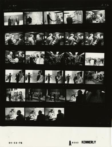 Keywords: Ford A9083 NLGRF photo contact sheet (1976-04-02)(Gerald Ford Library).jpg White House Photographic Office WHPO is housed at the Gerald R Ford Presidential Library a branch of the National Archives and Records Administration NARA <br/><br/> This file is a 200 dpi photo contact sheet having images from roll of film A9083 of the August 9 1974 - January 20 1977 Gerald R Ford White House Photographic Office Series A0001-A9999 and B0001-B2886 photographs <br/><br/> The date on the photo contact sheet is the date the roll of film was processed not necessarily the date the photographs were taken See table below for additional details 1976-04-02 Gerald R Ford Presidential Library Image http //www fordlibrarymuseum gov/library/whphotos/A9083_NLGRF jpg A9083_NLGRF jpg from http //www fordlibrarymuseum gov/library/whphotos/19760402whpo pdf White House Photographs April 2 1976 of the http //www fordlibrarymuseum gov/Library/whphotos/whpo asp White House Photographic Collection page White House Photographic Office WHPO <br/> Creator David Hume Kennerly PD-USGov Institution Institution Gerald R Ford Presidential Library Table wikitable sortable + Photo contact sheet A9083 U S President Ford Administration Gerald R Ford Library Frame s Tone Subject proper Subject generic Names Geographic Location Photographer Date - 26A-30A BW Campaign Trip to Wisconsin; Aboard Air Force One; Speechwriter and humorist Orben ; Consultant and humorist Penny seated on plane talking; Orben not shown GRF Don Penny Schneider; Robert Orben Air Force One Kennerly 1976-04-02 - 3A-17A BW Campaign Trip to Wisconsin; Tour of Green Bay Packers Headquarters; football team members; Coach and General Manager Starr President GBP Corp Olejniczak standing together looking at paperwork on wall; handshaking with film archivist staff; GRF holding helmet; visiting with team members in Nautilus room 26 and 76 GRF Bart Starr Staff Dominic Olejniczak Zeke Bratkowski Dominic Gentile Others Green Bay WI Green Bay Packers Football Team Headquarters Kennerly 1976-04-03 - 18A-25A BW Campaign Trip to Wisconsin; Dedication Ceremony Green Bay Packers Hall of Fame walking together outside; standing by dedication plaque on corner of building; touring memorabilia exhibits inside GRF Bart Starr Tom Hutchinson Media Green Bay WI Green Bay Packers Hall of Fame Kennerly 1976-04-03 Gerald R Ford Presidential Library and Museum-cooperation PD-USGov Contact sheets by the Ford White House April 1976 Photographs by David Hume Kennerly from 1976 |