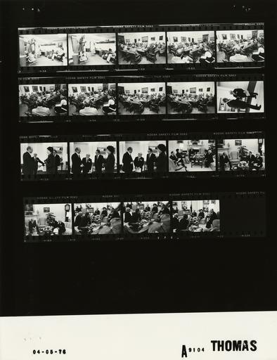 Keywords: Ford A9104 NLGRF photo contact sheet (1976-04-05)(Gerald Ford Library).jpg White House Photographic Office WHPO is housed at the Gerald R Ford Presidential Library a branch of the National Archives and Records Administration NARA <br/><br/> This file is a 200 dpi photo contact sheet having images from roll of film A9104 of the August 9 1974 - January 20 1977 Gerald R Ford White House Photographic Office Series A0001-A9999 and B0001-B2886 photographs <br/><br/> The date on the photo contact sheet is the date the roll of film was processed not necessarily the date the photographs were taken See table below for additional details 1976-04-05 Gerald R Ford Presidential Library Image http //www fordlibrarymuseum gov/library/whphotos/A9104_NLGRF jpg A9104_NLGRF jpg from http //www fordlibrarymuseum gov/library/whphotos/19760405whpo pdf White House Photographs April 5 1976 of the http //www fordlibrarymuseum gov/Library/whphotos/whpo asp White House Photographic Collection page White House Photographic Office WHPO - Thomas PD-USGov Institution Institution Gerald R Ford Presidential Library Table wikitable sortable + Photo contact sheet A9104 U S President Ford Administration Gerald R Ford Library Frame s Tone Subject proper Subject generic Names Geographic Location Photographer Date - 3A-4A BW White House Photo Office Staff Eisert standing on chair photographing Fitz-Patrick Sandra Eisert William Fitz-Patrick Photo Office Thomas 1976-04-05 - 5A-11A BW Meeting with Representataives of California Bankers Association who were attending a budget meeting at the White House seated around table; various angles and distances GRF California Bankers Association Members Roosevelt Room Thomas 1976-04-05 - 12A-21A BW Meeting with AHEPA Trustee DeMar and Member Nicholas retired Grand Rapids restaurant owner; Greek-Americans; American Hellenic Educational Progressive Assoc standing handshaking talking; seated in chairs by fireplace and sofa GRF Alex DeMar Mr Mrs James Nicolas Scowcroft Oval Office Thomas 1976-04-05 Gerald R Ford Presidential Library and Museum-cooperation PD-USGov Contact sheets by the Ford White House April 1976 |