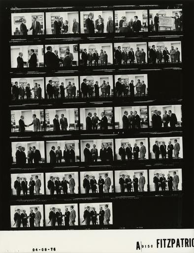 | Keywords: Ford A9158 NLGRF photo contact sheet (1976-04-08)(Gerald Ford Library).jpg  White House Photographic Office WHPO is housed at the Gerald R Ford Presidential Library a branch of the National Archives and Records Administration NARA <br/><br/> This file is a 200 dpi photo contact sheet having images from roll of film A9158 of the August 9 1974 - January 20 1977 Gerald R Ford White House Photographic Office Series A0001-A9999 and B0001-B2886 photographs <br/><br/> The date on the photo contact sheet is the date the roll of film was processed not necessarily the date the photographs were taken See table below for additional details 1976-04-08 Gerald R Ford Presidential Library Image http //www fordlibrarymuseum gov/library/whphotos/A9158_NLGRF jpg A9158_NLGRF jpg from http //www fordlibrarymuseum gov/library/whphotos/19760408whpo pdf White House Photographs April 8 1976 of the http //www fordlibrarymuseum gov/Library/whphotos/whpo asp White House Photographic Collection page White House Photographic Office WHPO - Fitz-Patrick PD-USGov Institution Institution Gerald R Ford Presidential Library Table wikitable sortable + Photo contact sheet A9158 U S President Ford Administration Gerald R Ford Library Frame s Tone Subject proper Subject generic Names Geographic Location Photographer Date - 3 BW Congressional Hour Present Crocheted Painting; US Senator from Maine ME standing handshaking GRF Sen William D Hathaway Oval Office Fitz-Patrick 1976-04-08 - 4-7 BW Congressional Hour Present Crocheted Painting; US Senator from Maine ME ; Resident of Caribou Maine Husband Son standing handshaking GRF Sen William D Hathaway Mrs Faris Stella Corey Faris Corey Lionel Corey Oval Office Fitz-Patrick 1976-04-08 - 8 BW Congressional Hour Present 150th Anniversary Coin Set; US Senator from Connecticut CT standing handshaking GRF Sen Lowell Weicker Jr Oval Office Fitz-Patrick 1976-04-08 - 9-16 BW Congressional Hour Present 150th Anniversary Coin Set; US Senator from Connecticut CT entering handshaking; standing holding coin set; all not in every frame GRF Sen Lowell Weicker Jr Jack Elmgren Leonard Henry Bucher John Andrews Johnson Oval Office Fitz-Patrick 1976-04-08 - 17 BW Fitz-Patrick 1976-04-08 - 18-19 BW Congressional Hour Present 2 Billionth Copy of New Testament by American Bible Society; US Senator from Rhode Island RI standing handshaking GRF Sen Claiborne Pell Oval Office Fitz-Patrick 1976-04-08 - 20-35 BW Congressional Hour Present 2 Billionth Copy of New Testament by American Bible Society; US Senator from Rhode Island RI standing holding coin set; all not in every frame GRF Sen Claiborne Pell; Edmund Wagner James Nettinga Oval Office Fitz-Patrick 1976-04-08 Gerald R Ford Presidential Library and Museum-cooperation PD-USGov Contact sheets by the Ford White House April 1976  |