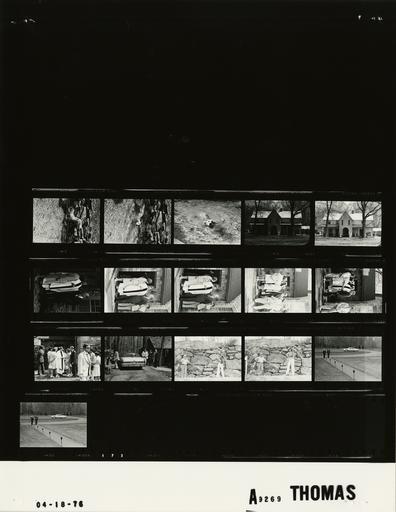 | Keywords: Ford A9269 NLGRF photo contact sheet (1976-04-18)(Gerald Ford Library).jpg White House Photographic Office WHPO is housed at the Gerald R Ford Presidential Library a branch of the National Archives and Records Administration NARA <br/><br/> This file is a 200 dpi photo contact sheet having images from roll of film A9269 of the August 9 1974 - January 20 1977 Gerald R Ford White House Photographic Office Series A0001-A9999 and B0001-B2886 photographs <br/><br/> The date on the photo contact sheet is the date the roll of film was processed not necessarily the date the photographs were taken See table below for additional details 1976-04-18 Gerald R Ford Presidential Library Image http //www fordlibrarymuseum gov/library/whphotos/A9269_NLGRF jpg A9269_NLGRF jpg from http //www fordlibrarymuseum gov/library/whphotos/19760418whpo pdf White House Photographs April 18 1976 of the http //www fordlibrarymuseum gov/Library/whphotos/whpo asp White House Photographic Collection page White House Photographic Office WHPO - Thomas PD-USGov Institution Institution Gerald R Ford Presidential Library Table wikitable sortable + Photo contact sheet A9269 U S President Ford Administration Gerald R Ford Library Frame s Tone Subject proper Subject generic Names Geographic Location Photographer Date - 5-7 BW Easter Sunday at Camp David; Presidential Pets; Golden Retriever Dog swimming Liberty's puppy Thurmont MD Camp David -Outdoors Thomas 1976-04-18 - 8-9 BW Easter Sunday at Camp David-enroute to Sunday worship Shot of house Catoctin Furnace MD enroute to Harriet Chapel Episcopal Parish Thomas 1976-04-18 - 10-16 BW Sunday at Camp David; Sunday Worship; Rev Shaffer's Wife and Children Debbie Cindy Mike and Chuck standing talking with Reverend and family outside chapel after services GRF Betty Ford Rev Mrs Charles Shaffer; Debbie Cindy Mike Chuck Shaffer; Secret Service Catoctin Furnace MD Harriet Chapel Episcopal Parish Thomas 1976-04-18 - 17-18 BW Easter Sunday at Camp David; Golf; Girlfriend of Kennerly woman with pail of golf balls driving; GRF watching GRF Paula Ahalt Thurmont MD Camp David -Golf Course Thomas 1976-04-18 - 19-20 BW Easter Sunday at Camp David saluting standing at attention at end of walkway to helicopter pad limousine in view Military Camp David Thomas 1976-04-18 Gerald R Ford Presidential Library and Museum-cooperation PD-USGov Contact sheets by the Ford White House April 1976 |