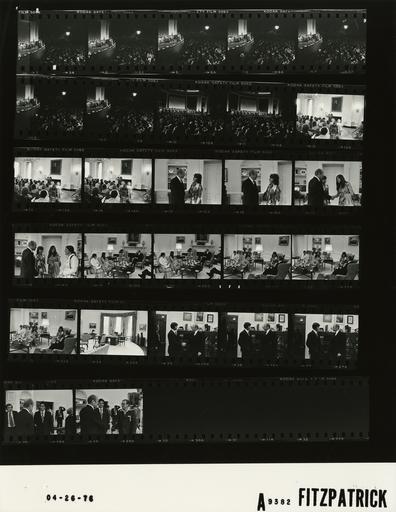 | Keywords: Ford A9382 NLGRF photo contact sheet (1976-04-26)(Gerald Ford Library).jpg White House Photographic Office WHPO is housed at the Gerald R Ford Presidential Library a branch of the National Archives and Records Administration NARA <br/><br/> This file is a 200 dpi photo contact sheet having images from roll of film A9382 of the August 9 1974 - January 20 1977 Gerald R Ford White House Photographic Office Series A0001-A9999 and B0001-B2886 photographs <br/><br/> The date on the photo contact sheet is the date the roll of film was processed not necessarily the date the photographs were taken See table below for additional details 1976-04-26 Gerald R Ford Presidential Library Image http //www fordlibrarymuseum gov/library/whphotos/A9382_NLGRF jpg A9382_NLGRF jpg from http //www fordlibrarymuseum gov/library/whphotos/19760426whpo pdf White House Photographs April 26 1976 of the http //www fordlibrarymuseum gov/Library/whphotos/whpo asp White House Photographic Collection page White House Photographic Office WHPO - Fitz-Patrick PD-USGov Institution Institution Gerald R Ford Presidential Library Table wikitable sortable + Photo contact sheet A9382 U S President Ford Administration Gerald R Ford Library Frame s Tone Subject proper Subject generic Names Geographic Location Photographer Date - 3-11 BW 64th Annual Meeting of the US Chamber of Commerce-Remarks long views of GRF at podium onstage with band members seated behind him and audience seated GRF Audience band Washington D C DAR Constitution Hall Fitz-Patrick 1976-04-26 - 12-14 BW Meeting of Top Level Women In Government-Remarks GRF at podium under Lincoln portrait audience seated in foreground GRF Audience State Dining Room Fitz-Patrick 1976-04-26 - 15-23 BW Meeting with Ambassador-designate of the US to Nepal standing handshaking; seated in chairs by fireplace and sofa; various angles and distances; all not in every frame GRF Marquita Maytag; daughters Dana Marquita Maytag Oval Office Fitz-Patrick 1976-04-26 - 24 BW Scheduling and Advance Secretary seated at President's Desk Nell Yates Oval Office Fitz-Patrick 1976-04-26 - 25-27 BW Member of White House Press Office Staff handshaking standing talking GRF Unidentified Man Patrick H Butler David W Boorstin Douglas J Smith President's Private Office Fitz-Patrick 1976-04-26 - 28-29 BW Taping of Interview with Anchorman for San Antonio Texas' KMOL-TV-prior to; Media Consultant Mead standing handshaking GRF Robert Mead Gene Lively camera crew Oval Office Fitz-Patrick 1976-04-26 Gerald R Ford Presidential Library and Museum-cooperation PD-USGov Contact sheets by the Ford White House April 1976 |
