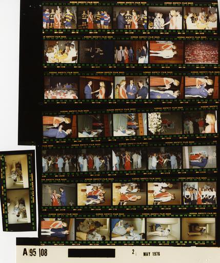Keywords: Ford A9508 NLGRF photo contact sheet (1976-04-30)(Gerald Ford Library).jpg White House Photographic Office WHPO is housed at the Gerald R Ford Presidential Library a branch of the National Archives and Records Administration NARA <br/><br/> This file is a 200 dpi photo contact sheet having images from roll of film A9508 of the August 9 1974 - January 20 1977 Gerald R Ford White House Photographic Office Series A0001-A9999 and B0001-B2886 photographs <br/><br/> The date on the photo contact sheet is the date the roll of film was processed not necessarily the date the photographs were taken See table below for additional details 1976-04-30 Gerald R Ford Presidential Library Image http //www fordlibrarymuseum gov/library/whphotos/A9508_NLGRF jpg A9508_NLGRF jpg from http //www fordlibrarymuseum gov/library/whphotos/19760430whpo pdf White House Photographs April 30 1976 of the http //www fordlibrarymuseum gov/Library/whphotos/whpo asp White House Photographic Collection page White House Photographic Office WHPO - Unidentified PD-USGov Institution Institution Gerald R Ford Presidential Library Table wikitable sortable + Photo contact sheet A9508 U S President Ford Administration Gerald R Ford Library Frame s Tone Subject proper Subject generic Names Geographic Location Photographer Date - 0A-2A Color Susan Ford as Queen of 1976 International Azalea Festival-Photo Op with MacArthur Cup Rugby Team standing posing holding cup Susan Ford MacArthur Cup Rugby Team Members Norfolk VA Omni International Hotel Unidentified 1976-04-30 - 3A-8A Color Susan Ford as Queen of 1976 International Azalea Festival-Dinner at Sportskella Restaurant handshaking; seated dining; walking; Susan and Kingsman standing together Susan Ford Midshipman Kilton D Kingsman Others Norfolk VA Sportskella Restaurant/Sco pe Arena Unidentified 1976-04-30 - 9A-10A Color Susan Ford as Queen of 1976 International Azalea Festival-Queen's Command Performance; Singer Anne Murray audience seated Murray and musicians on stage Audience Anne Murray Norfolk VA Chrysler Hall Unidentified 1976-04-30 - 11A-25A Color Susan Ford as Queen of 1976 International Azalea Festival-Azalea Queen and her Court attend Square Dance and Brief Recognition standing handshaking presenting pin; Queen onstage seated on throne; square dancing Susan Ford Unidentified Men; Princesses Others Norfolk VA Scope Hall Unidentified 1976-04-30 - 26A-30A Color Susan Ford as Queen of 1976 International Azalea Festival-Reception for Queen hosted by WQRK Radio Susa and others enter restaurant to greet radio station staff seated at table posing together Susan Ford princess Midshipman Kilton D Kingsman Female Staff Norfolk VA Sportskella Restaurant/Sco pe Hall Unidentified 1976-04-30 - 31A-34A Color Susan Ford as Queen of 1976 International Azalea Festival-Hairdressing for Coronation Ceremony Susan seated hairdresser putting hair in rollers Susan Ford Hairdresser Norfolk VA Omni Hotel Unidentified 1976-04-30 Gerald R Ford Presidential Library and Museum-cooperation PD-USGov Contact sheets by the Ford White House April 1976 Women called queens in the United States Flower Queens |