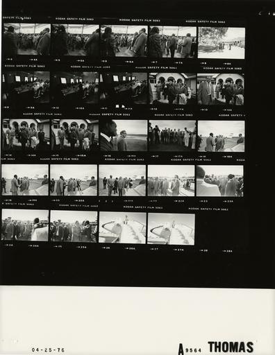 Keywords: Ford A9564 NLGRF photo contact sheet (1976-04-24)(Gerald Ford Library).jpg White House Photographic Office WHPO is housed at the Gerald R Ford Presidential Library a branch of the National Archives and Records Administration NARA <br/><br/> This file is a 200 dpi photo contact sheet having images from roll of film A9564 of the August 9 1974 - January 20 1977 Gerald R Ford White House Photographic Office Series A0001-A9999 and B0001-B2886 photographs <br/><br/> The date on the photo contact sheet is the date the roll of film was processed not necessarily the date the photographs were taken See table below for additional details 1976-04-24 Gerald R Ford Presidential Library Image http //www fordlibrarymuseum gov/library/whphotos/A9564_NLGRF jpg A9564_NLGRF jpg from http //www fordlibrarymuseum gov/library/whphotos/19760424whpo pdf White House Photographs April 24 1976 of the http //www fordlibrarymuseum gov/Library/whphotos/whpo asp White House Photographic Collection page White House Photographic Office WHPO - Thomas PD-USGov Institution Institution Gerald R Ford Presidential Library Table wikitable sortable + Photo contact sheet A9564 U S President Ford Administration Gerald R Ford Library Frame s Tone Subject proper Subject generic Names Geographic Location Photographer Date - 9A-11A BW SecState Trip to Africa; Luncheon Meeting with Kenyan President Jomo Kenyatta; US Amb To Kenya Marshall seated on both sides of long dining table Kenyatta seated at head of table cane on table; Marshall seated next to HAK Kissinger Jomo Kenyatta Amb Anthony D Marshall Charles W Robinson staff African Dignitaries Nakuru Kenya Africa President Kenyatta's Country Residence - Canopied Arena Thomas 1976-04-24 - 16A-25A BW SecState Trip to Africa; Departing Kenya standing on tarmac handshaking talking Kissinger Charles W Robinson; Amb Anthony D Marshall African Dignitaries Media Nairobi Kenya Africa Nairobi Airport Thomas 1976-04-24 - 26A-27A BW SecState Trip to Africa--Departing Kenya; SecState standing wavaing at top of ramp of plane Kissinger Nairobi Kenya Africa Nairobi Airport Thomas 1976-04-24 - 4A-7A BW SecState Trip to Africa; Arrival Ceremony at Nakuru Landing Field; Natives Welcoming Dance; ABC Newsman Koppel; Masai standing near dancers in native dress holding sticks watching talking; Koppel listening to Kissinger Kissinger Jomo Kenyatta Native Masai Dancers Ted Koppel African Officials Police Media Unidentified American Woman Nakuru Kenya Africa Nakuru Landing Field Thomas 1976-04-25 - 8A BW SecState Trip to Africa--Arrival at Kenyan President Jomo Kenyatta's Country Residence milling around entrance standing in courtyard talking Unidentified African American persons Nakuru Kenya Africa President Kenyatta's Country Residence - Exterior Thomas 1976-04-25 - 12A-15A BW SecState Trip to Africa; Leaving Kenyan President Jomo Kenyatta's Country Residence; US Amb to Kenya Marshall; State Dept Spokesman Trattner departing building; Kenyatta and HAK talking shaking hands Marshall standng behind them Kissinger Jomo Kenyatta John Trattner Amb Anthony D Marshall Charles W Robinson African Dignitaries staff Nakuru Kenya Africa President Kenyatta's Country Residence - Exterior Thomas 1976-04-25 Gerald R Ford Presidential Library and Museum-cooperation PD-USGov Contact sheets by the Ford White House April 1976 |