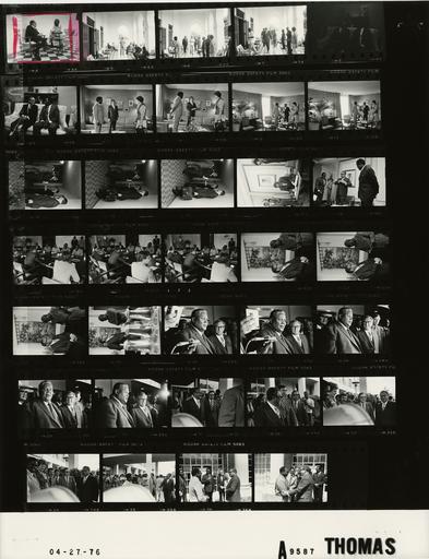 | Keywords: Ford A9587 NLGRF photo contact sheet (1976-04-26)(Gerald Ford Library).jpg White House Photographic Office WHPO is housed at the Gerald R Ford Presidential Library a branch of the National Archives and Records Administration NARA <br/><br/> This file is a 200 dpi photo contact sheet having images from roll of film A9587 of the August 9 1974 - January 20 1977 Gerald R Ford White House Photographic Office Series A0001-A9999 and B0001-B2886 photographs <br/><br/> The date on the photo contact sheet is the date the roll of film was processed not necessarily the date the photographs were taken See table below for additional details 1976-04-26 Gerald R Ford Presidential Library Image http //www fordlibrarymuseum gov/library/whphotos/A9587_NLGRF jpg A9587_NLGRF jpg from http //www fordlibrarymuseum gov/library/whphotos/19760426whpo pdf White House Photographs April 26 1976 of the http //www fordlibrarymuseum gov/Library/whphotos/whpo asp White House Photographic Collection page White House Photographic Office WHPO - Thomas PD-USGov Institution Institution Gerald R Ford Presidential Library Table wikitable sortable + Photo contact sheet A9587 U S President Ford Administration Gerald R Ford Library Frame s Tone Subject proper Subject generic Names Geographic Location Photographer Date - 4 BW SecState Trip to Africa--Prior to Luncheon with Tanzanian President Nyerere seated in chairs talking intimately Kissinger Julius Nyerere Tanzania Dar Es Salaam Thomas 1976-04-26 - 5-7 BW SecState Trip to Africa; Prior to Luncheon with Tanzanian President Nyerere; Tanzanian Foreign Minister Kaduma Kissinger and Nyerere seated in chairs foursome seated together under archway; rising walking to luncheon; Kaduma walking behind Nyerere Kissinger Julius Nyerere; Tanzanian Deputy Foreign Minister Ibrahim M Kaduma Others Tanzania Dar Es Salaam Thomas 1976-04-26 - 8-9 BW SecState Trip to Africa; Meeting with Zambian Officials seated together on quilted sofa Kissinger Unidentified African Official Zambia Unidentified Thomas 1976-04-27 - 10-13 BW SecState Trip to Africa; Meeting with Zambian Officials; US Ambassador to Zambia Wilkowski standing talking Kissinger Unidentified African Official Amb Jean M Wilkowski Zambia Unidentified hotel-Kissinger Suite Thomas 1976-04-27 - 14-16 BW SecState Trip to Africa; Meeting with Zambian Officials; US Ambassador to Zambia Wilkowski standing in hallway talking Kissinger Unidentified African Official Amb Jean M Wilkowski Zambia Unidentified hotel-Kissinger Suite- hallway Thomas 1976-04-27 - 17-18 BW SecState Trip to Africa; Meeting with Zambian Officials Kissinger signing book under framed portrait of Pres Kaunda Kissinger Unidentified African Official Amb Jean M Wilkowski staff Zambia Unidentified hotel room Thomas 1976-04-27 - 19-21 BW SecState Trip to Africa; Meeting with Zambian President Kenneth Kaunda and Others seated on opposite sides of table Kissinger Kenneth Kaunda African American Officials; staff Lusaka Zambia Africa Unidentified Meeting Room Thomas 1976-04-27 - 22-25 BW SecState Trip to Africa; Meeting with Zambian President Kenneth Kaunda and Others standing talking in front of hanging tapestry Kissinger Kenneth Kaunda Lusaka Zambia Africa Unidentified Meeting Room Thomas 1976-04-27 - 26-30 BW SecState Trip to Africa--Press Q A with Kissinger and leader of Rhodesian-based faction of African National Council ZAPU Zimbabwe African Peoples Union standing together Nkomo speaking into microphone Kissinger watching listening Kissinger Joshua Nkomo; Others Lusaka Zambia Africa Unidentified Meeting Room Thomas 1976-04-27 - 31-37 BW SecState Trip to Africa--Departing Meeting Site departing hotel standing talking handshaking Kissinger Others; Amb Jean M Wilkowski; Charles W Robinson Dignitaries Media Crowd Lusaka Zambia Africa Unidentified Building Thomas 1976-04-27 Gerald R Ford Presidential Library and Museum-cooperation PD-USGov Contact sheets by the Ford White House April 1976 1976 in Tanzania 1976 in Zambia Julius Nyerere |