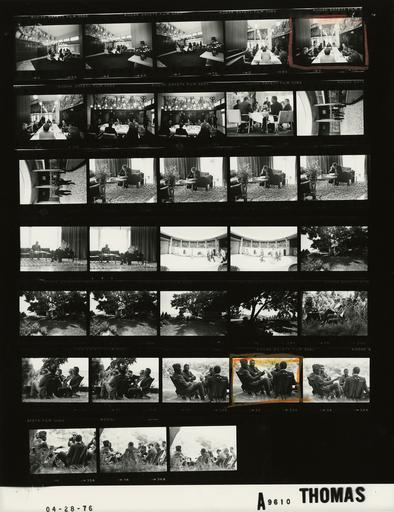 Keywords: Ford A9610 NLGRF photo contact sheet (1976-04-28)(Gerald Ford Library).jpg White House Photographic Office WHPO is housed at the Gerald R Ford Presidential Library a branch of the National Archives and Records Administration NARA <br/><br/> This file is a 200 dpi photo contact sheet having images from roll of film A9610 of the August 9 1974 - January 20 1977 Gerald R Ford White House Photographic Office Series A0001-A9999 and B0001-B2886 photographs <br/><br/> The date on the photo contact sheet is the date the roll of film was processed not necessarily the date the photographs were taken See table below for additional details 1976-04-28 Gerald R Ford Presidential Library Image http //www fordlibrarymuseum gov/library/whphotos/A9610_NLGRF jpg A9610_NLGRF jpg from http //www fordlibrarymuseum gov/library/whphotos/19760428whpo pdf White House Photographs April 28 1976 of the http //www fordlibrarymuseum gov/Library/whphotos/whpo asp White House Photographic Collection page White House Photographic Office WHPO - Thomas PD-USGov Institution Institution Gerald R Ford Presidential Library Table wikitable sortable + Photo contact sheet A9610 U S President Ford Administration Gerald R Ford Library Frame s Tone Subject proper Subject generic Names Geographic Location Photographer Date - 5-13 BW SecState Trip to Africa-Working Breakfast with Zairian Foreign Minister seated at oblong table in large room with large murals Kissinger Jean Nguza Karl-i-Bond; Amb Walter Cutler Charles W Robinson; Peter W Rodman; William E Schaufele Jr Interpreter Unidentified African Official Kinshasa Zaire Africa President's Palace Thomas 1976-04-28 - 14-15 BW SecState Trip to Africa-Working Breakfast with Zairian Foreign Minister-departing from departing Palace walking away from door handshaking Jean Nguza Karl-i-Bond; Unidentified American African Official Kinshasa Zaire Africa President's Palace - Exterior Thomas 1976-04-28 - 16-19 BW SecState Trip to Africa--Deputy Secretary of State seated on sofa reading document on coffee table Charles W Robinson Kinshasa Zaire Africa President's Palace - Kissinger Suite Thomas 1976-04-28 - 20-21 BW SecState Trip to Africa; Deputy Secretary of State Robinson seated on sofa and chair reading documents Charles W Robinson Interpreter Kinshasa Zaire Africa President's Palace - Kissinger Suite Thomas 1976-04-28 - 22-23 BW SecState Trip to Africa--Enroute to meeting with Zairian Pres Mobutu Sese Seko; Zairian Foreign Minister Karl-i-Bond walking outside building Kissinger Jean Nguza Karl-i-Bond Entourage Kinshasa Zaire Africa President's Palace - Exterior Thomas 1976-04-28 - 24-37 BW SecState Trip to Africa--Post-Breakfast Meeting with Zairian Pres Mobutu Sese Seko-first meeting; Zairian Foreign Minister Karl-i-Bond seated in deck chairs in shade; drinks on low coffee table talking animatedly midrange long view Kissinger Mobutu Sese Seko; Jean Nguza Karl-i-Bond; Amb Walter Cutler Charles W Robinson; William E Schaufele Jr Interpreter Others Kinshasa Zaire Africa President's Palace - Pavillon on grass overlooking Congo River Thomas 1976-04-28 Gerald R Ford Presidential Library and Museum-cooperation PD-USGov Contact sheets by the Ford White House April 1976 |