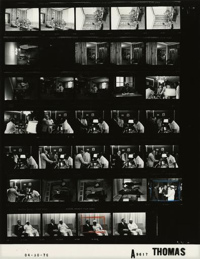 Keywords: Ford A9617 NLGRF photo contact sheet (1976-04-30)(Gerald Ford Library).jpg White House Photographic Office WHPO is housed at the Gerald R Ford Presidential Library a branch of the National Archives and Records Administration NARA <br/><br/> This file is a 200 dpi photo contact sheet having images from roll of film A9617 of the August 9 1974 - January 20 1977 Gerald R Ford White House Photographic Office Series A0001-A9999 and B0001-B2886 photographs <br/><br/> The date on the photo contact sheet is the date the roll of film was processed not necessarily the date the photographs were taken See table below for additional details 1976-04-30 Gerald R Ford Presidential Library Image http //www fordlibrarymuseum gov/library/whphotos/A9617_NLGRF jpg A9617_NLGRF jpg from http //www fordlibrarymuseum gov/library/whphotos/19760430whpo pdf White House Photographs April 30 1976 of the http //www fordlibrarymuseum gov/Library/whphotos/whpo asp White House Photographic Collection page White House Photographic Office WHPO - Thomas PD-USGov Institution Institution Gerald R Ford Presidential Library Table wikitable sortable + Photo contact sheet A9617 U S President Ford Administration Gerald R Ford Library Frame s Tone Subject proper Subject generic Names Geographic Location Photographer Date - 4A-8A BW SecState Trip to Africa-Meeting with US Ambassador to Ghana Shirley Temple Black seated on sofa in chairs in paneled room Kissinger Shirley Temple Black Monrovia Liberia Africa Unidentified-Kissinger Suite Thomas 1976-04-30 - 9A-16A BW SecState Trip to Africa-Meeting with US Ambassador to Liberia Carter seated in sofa and hairs in series of paneled rooms Kissinger Amb W Beverly Carter Monrovia Liberia Africa Unidentified-Kissinger Suite Thomas 1976-04-30 - 17A BW SecState Trip to Africa-SecState Handwriting seated at table writing on paper book with pen Kissinger Monrovia Liberia Africa Unidentified-Kissinger Suite Thomas 1976-04-30 - 18A-29A BW SecState Trip to Africa; Meeting with Liberian President William T Tolbert Jr Reaching over his desk Tolbert shakes hands with line up of visitors Kissinger William T Tolbert Jr Amb W Beverly Carter Peter Rodman William Schaufele Jr Unidentified Winston Lord John Trattner Unidentified Monrovia Liberia Africa Executive Mansion--President Tolbert's Office Thomas 1976-04-30 - 30A-32A BW SecState Trip to Africa-US Ambassador to Liberia Carter and AsstSecState for African Affairs Schaufele standing talking; Schaufele holding document Amb W Beverly Carter William Schaufele Jr Unidentified African man Monrovia Liberia Africa Executive Mansion Thomas 1976-04-30 - 33A BW SecState Trip to Africa; Mingling with Liberian President William T Tolbert Jr Tolbert talking to HAK hand on arm holding stick; others standing around Kissinger William T Tolbert Jr Others Monrovia Liberia Africa Executive Mansion Thomas 1976-04-30 - 34A-37 BW SecState Trip to Africa; State Dinner in honor of Sec Kissinger hosted by Liberian President William T Tolbert Jr ; Reception seated together on sofa talking laughing Kissinger William T Tolbert Jr Monrovia Liberia Africa Executive Mansion Thomas 1976-04-30 Gerald R Ford Presidential Library and Museum-cooperation PD-USGov Contact sheets by the Ford White House April 1976 1976 in Liberia