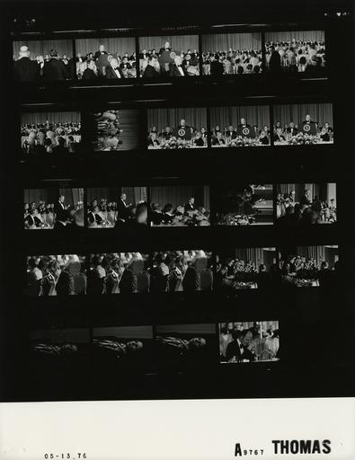 Keywords: Ford A9767 NLGRF photo contact sheet (1976-05-13)(Gerald Ford Library).jpg White House Photographic Office WHPO is housed at the Gerald R Ford Presidential Library a branch of the National Archives and Records Administration NARA <br/><br/> This file is a 200 dpi photo contact sheet having images from roll of film A9767 of the August 9 1974 - January 20 1977 Gerald R Ford White House Photographic Office Series A0001-A9999 and B0001-B2886 photographs <br/><br/> The date on the photo contact sheet is the date the roll of film was processed not necessarily the date the photographs were taken See table below for additional details 1976-05-13 Gerald R Ford Presidential Library Image http //www fordlibrarymuseum gov/library/whphotos/A9767_NLGRF jpg A9767_NLGRF jpg from http //www fordlibrarymuseum gov/library/whphotos/19760513whpo pdf White House Photographs May 13 1976 of the http //www fordlibrarymuseum gov/Library/whphotos/whpo asp White House Photographic Collection page White House Photographic Office WHPO - Thomas PD-USGov Institution Institution Gerald R Ford Presidential Library Table wikitable sortable + Photo contact sheet A9767 U S President Ford Administration Gerald R Ford Library Frame s Tone Subject proper Subject generic Names Geographic Location Photographer Date - 3-17 BW Annual Meeting of the American Jewish Committee Institute of Human Relations--GRF Remarks; 70th Anniversary Dinner GRF at lectern; all dais guests may not be shown; formal wear GRF Rabbi Haberman Weinstick Wishner Spivak Gold Freeman Smith Lautenberg Guillermo Hoffman Dinitz Kreeger Fisher Winter Sisco Abram Shehan Maass Mitchell Sustein Buchen Ellenoff Steinbruck; Media Washington D C Washington Hilton Hotel - International Ballroom Thomas 1976-05-13 - 18-20 BW Annual Meeting of the American Jewish Committee Institute of Human Relations--GRF Remarks; 70th Anniversary Dinner seated at table examining his Polaroid camera Unidentified male guest Washington D C Washington Hilton Hotel - International Ballroom Thomas 1976-05-13 - 21-22 BW Annual Meeting of the American Jewish Committee Institute of Human Relations--GRF Remarks; 70th Anniversary Dinner GRF turns to wave at guests on dais; all may not be shown GRF Rabbi Haberman Weinstick Wishner Spivak Gold Freeman Smith Lautenberg Guillermo Hoffman Dinitz Kreeger Fisher Winter Sisco Abram Shehan Maass Mitchell Sustein Buchen Ellenoff Steinbruck; Media Washington D C Washington Hilton Hotel - International Ballroom Thomas 1976-05-13 - 23-25 BW Annual Meeting of the American Jewish Committee Institute of Human Relations--GRF Remarks; 70th Anniversary Dinner standing listening; close ups Unidentidied Woman Washington D C Washington Hilton Hotel - International Ballroom Thomas 1976-05-13 - 26 BW Annual Meeting of the American Jewish Committee Institute of Human Relations--GRF Remarks; 70th Anniversary Dinner; Asst for National Security Affairs seated at table listening; hands clasped head bowed; formal wear Scowcroft Washington D C Washington Hilton Hotel - International Ballroom Thomas 1976-05-13 Gerald R Ford Presidential Library and Museum-cooperation PD-USGov Contact sheets by the Ford White House May 1976 |