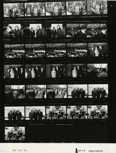 | Keywords: Ford A9778 NLGRF photo contact sheet (1976-05-13)(Gerald Ford Library).jpg White House Photographic Office WHPO is housed at the Gerald R Ford Presidential Library a branch of the National Archives and Records Administration NARA <br/><br/> This file is a 200 dpi photo contact sheet having images from roll of film A9778 of the August 9 1974 - January 20 1977 Gerald R Ford White House Photographic Office Series A0001-A9999 and B0001-B2886 photographs <br/><br/> The date on the photo contact sheet is the date the roll of film was processed not necessarily the date the photographs were taken See table below for additional details 1976-05-13 Gerald R Ford Presidential Library Image http //www fordlibrarymuseum gov/library/whphotos/A9778_NLGRF jpg A9778_NLGRF jpg from http //www fordlibrarymuseum gov/library/whphotos/19760513whpo pdf White House Photographs May 13 1976 of the http //www fordlibrarymuseum gov/Library/whphotos/whpo asp White House Photographic Collection page White House Photographic Office WHPO - Fitz-Patrick PD-USGov Institution Institution Gerald R Ford Presidential Library Table wikitable sortable + Photo contact sheet A9778 U S President Ford Administration Gerald R Ford Library Frame s Tone Subject proper Subject generic Names Geographic Location Photographer Date - 3A-7A BW Bicentennial Presentation of Declarations of Independence by Western High School Students from Everett Washington; News Director Lewis; US Representative from Washington WA standing on steps handshaking holding large book with signatures GRF Rep Lloyd Meeds Thomas Lewis Rose Garden Fitz-Patrick 1976-05-13 - 8A-10A BW he standing together handshaking talking GRF Frederick Alexander Washington D C Hyatt Regency Hotel Fitz-Patrick 1976-05-13 - 11A-16A BW Bicentennial Salute to Small Business Luncheon of Small Business Administration-GRF Remarks GRF at podium long view; platform gouests GRF Audience Platform Guests Washington D C Hyatt Regency Hotel - Columbia Ballroom Fitz-Patrick 1976-05-13 - 17A-21A BW Bicentennial Salute to Small Business Luncheon-Photo Op with Recipients of SBA Small Business Persons of the Year Awards; Small Business Administration Administrator Kobelinski standing handshaking talking posing GRF Mitchell Kobelinski recipients; O'Donnell Washington D C Hyatt Regency Hotel - Outside Columbia Ballroom Fitz-Patrick 1976-05-13 - 22A-25A BW Bicentennial Salute to Small Business Luncheon-Departing from; Small Business Administration Administrator Kobelinski handshaking by limo GRF Unidentified Man Mitchell Kobelinski Secret Service; Crowd Police Washington D C Hyatt Regency Hotel - Curb Fitz-Patrick 1976-05-13 - 26A-33A BW Meeting with Governor of Ohio OH standing together; seated in chairs by fireplace GRF Gov James Rhodes Unidentified Man Oval Office Fitz-Patrick 1976-05-13 Gerald R Ford Presidential Library and Museum-cooperation PD-USGov Contact sheets by the Ford White House May 1976 |