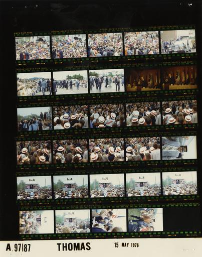 Keywords: Ford A9787 NLGRF photo contact sheet (1976-05-14)(Gerald Ford Library).jpg White House Photographic Office WHPO is housed at the Gerald R Ford Presidential Library a branch of the National Archives and Records Administration NARA <br/><br/> This file is a 200 dpi photo contact sheet having images from roll of film A9787 of the August 9 1974 - January 20 1977 Gerald R Ford White House Photographic Office Series A0001-A9999 and B0001-B2886 photographs <br/><br/> The date on the photo contact sheet is the date the roll of film was processed not necessarily the date the photographs were taken See table below for additional details 1976-05-14 Gerald R Ford Presidential Library Image http //www fordlibrarymuseum gov/library/whphotos/A9787_NLGRF jpg A9787_NLGRF jpg from http //www fordlibrarymuseum gov/library/whphotos/19760514whpo pdf White House Photographs May 14 1976 of the http //www fordlibrarymuseum gov/Library/whphotos/whpo asp White House Photographic Collection page White House Photographic Office WHPO - Thomas PD-USGov Institution Institution Gerald R Ford Presidential Library Table wikitable sortable + Photo contact sheet A9787 U S President Ford Administration Gerald R Ford Library Frame s Tone Subject proper Subject generic Names Geographic Location Photographer Date - 4-7 Color Primary Campaign Trip to Tennessee; Campaign Rally; US Senator from Tennessee TN GRF at podium addressing crowd GRF Crowd; Sen William Brock Memphis TN Mid-America Mall Thomas 1976-05-14 - 8 Color Primary Campaign Trip to Tennessee GRF standing in limousine waving GRF Secret Service Crowd Memphis TN Memphis Street Thomas 1976-05-14 - 9-11 Color Primary Campaign Trip to Tennessee-Airport Departure GRF walking by rope waving to crowd GRF Secret Service Crowd Memphis TN Memphis International Airport Thomas 1976-05-14 - 12-13 Color Primary Campaign Trip to Kentucky; 15th Annual Louisville Armed Forces Day Dinner; GRF Remarks; Gen Van Stockum Retired USMC -Louisville Kentucky GRF at podium GRF Gen Richard Frymire Gen Ronald Van Stockum Louisville KY Galt House Hotel Thomas 1976-05-14 - 14 Color Primary Campaign Whistle-Stop Tour of Michigan-Flint waving to crowd GRF Crowd Media Flint MI Train Station Thomas 1976-05-15 - 15-22 Color Primary Campaign Whistle-Stop Tour of Michigan-Flint GRF BF handshaking with many persons wearing red and white President Ford 76 panama hats GRF Betty Ford Crowd Secret Service Media Flint MI Train Station Thomas 1976-05-15 - 23 Color Primary Campaign Whistle-Stop Tour of Michigan-Flint waving wearing GTW Conductor cap Unidentified Man Flint MI Train Station Thomas 1976-05-15 - 24-30 Color Primary Campaign Whistle-Stop Tour of Michigan-Flint standing sitting on back of train GRF at microphone GRF Betty Ford Unidentified Men Crowd Flint MI Train Station Thomas 1976-05-15 - 31-32 Color Primary Campaign Whistle-Stop Tour of Michigan-Flint GRF handshaking at rope; Cavaney wearing conductor's cap GRF Unidentified Men Crowd Cavaney Flint MI Train Station Thomas 1976-05-15 Gerald R Ford Presidential Library and Museum-cooperation PD-USGov Contact sheets by the Ford White House May 1976 |