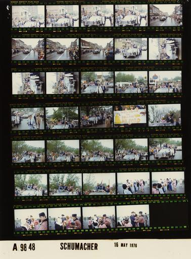 | Keywords: Ford A9848 NLGRF photo contact sheet (1976-05-15)(Gerald Ford Library).jpg White House Photographic Office WHPO is housed at the Gerald R Ford Presidential Library a branch of the National Archives and Records Administration NARA <br/><br/> This file is a 200 dpi photo contact sheet having images from roll of film A9848 of the August 9 1974 - January 20 1977 Gerald R Ford White House Photographic Office Series A0001-A9999 and B0001-B2886 photographs <br/><br/> The date on the photo contact sheet is the date the roll of film was processed not necessarily the date the photographs were taken See table below for additional details 1976-05-15 Gerald R Ford Presidential Library Image http //www fordlibrarymuseum gov/library/whphotos/A9848_NLGRF jpg A9848_NLGRF jpg from http //www fordlibrarymuseum gov/library/whphotos/19760515whpo pdf White House Photographs May 15 1976 of the http //www fordlibrarymuseum gov/Library/whphotos/whpo asp White House Photographic Collection page White House Photographic Office WHPO - Schumacher PD-USGov Institution Institution Gerald R Ford Presidential Library Table wikitable sortable + Photo contact sheet A9848 U S President Ford Administration Gerald R Ford Library Frame s Tone Subject proper Subject generic Names Geographic Location Photographer Date - 2A-21A Color Primary Campaign Whistle-Stop Tour of Michigan; 47th Annual Tulip Time Festival Parade; US Representative from Michigan MI BF/GRF/Vander Jagt waving from sunroof; USSS walking alongside limo crowd at curb and on bleachers; Welcome to Holland sign GRF Betty Ford Rep Guy Vander Jagt Secret Service Crowd Holland MI Streets of Holland Schumacher 1976-05-15 - 22A-29A Color Primary Campaign Whistle-Stop Tour of Michigan-47th Annual Tulip Time Festival Parade BF/GRF/Vander Jagt waving from sunroof; Susan seated on limo roof; USSS walking alongside limo crowd at curb GRF Betty Ford Susan Ford Rep Guy Vander Jagt R-MI Secret Service Crowd Holland MI Residential Streets of Holland Schumacher 1976-05-15 - 30A-35A Color Primary Campaign Whistle-Stop Tour of Michigan-Airport Departure; Dutch costumes and shoes captain's cap standing by plane holding Dutch shoes flowers; GRF receives and puts on a captain's cap GRF Betty Ford Men Women Children in ethnic Dutch clothing Holland MI Tulip City Airport Schumacher 1976-05-15 Gerald R Ford Presidential Library and Museum-cooperation PD-USGov Contact sheets by the Ford White House May 1976 |