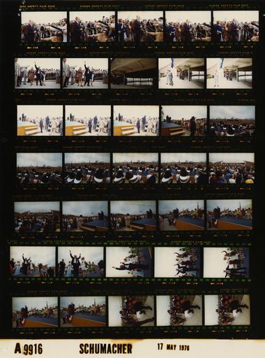 Keywords: Ford A9916 NLGRF photo contact sheet (1976-05-16)(Gerald Ford Library).jpg White House Photographic Office WHPO is housed at the Gerald R Ford Presidential Library a branch of the National Archives and Records Administration NARA <br/><br/> This file is a 200 dpi photo contact sheet having images from roll of film A9916 of the August 9 1974 - January 20 1977 Gerald R Ford White House Photographic Office Series A0001-A9999 and B0001-B2886 photographs <br/><br/> The date on the photo contact sheet is the date the roll of film was processed not necessarily the date the photographs were taken See table below for additional details 1976-05-16 Gerald R Ford Presidential Library Image http //www fordlibrarymuseum gov/library/whphotos/A9916_NLGRF jpg A9916_NLGRF jpg from http //www fordlibrarymuseum gov/library/whphotos/19760516whpo pdf White House Photographs May 16 1976 of the http //www fordlibrarymuseum gov/Library/whphotos/whpo asp White House Photographic Collection page White House Photographic Office WHPO - Schumacher PD-USGov Institution Institution Gerald R Ford Presidential Library Table wikitable sortable + Photo contact sheet A9916 U S President Ford Administration Gerald R Ford Library Frame s Tone Subject proper Subject generic Names Geographic Location Photographer Date - 2A-6A Color Primary Campaign Whistle-Stop Tour of Michigan; Airport Arrival - Saginaw Michigan GRF speaking into reporters' microphones GRF Media Growald Betty Ford Susan Ford Saginaw MI Tri-City Airport Schumacher 1976-05-16 - 7A-8A Color Primary Campaign Whistle-Stop Tour of Michigan; Arriving for Saginaw Township Bicentennial Celebration - Saginaw Michigan walking on pavement waving GRF Betty Ford Susan Ford Secret Service School Band Saginaw MI Sherwood Elementary School Schumacher 1976-05-16 - 9A-11A Color Primary Campaign Whistle-Stop Tour of Michigan; Arriving for Saginaw Township Bicentennial Celebration - Saginaw Michigan views of parking garage Unidentified Men Military Saginaw MI Sherwood Elementary School Schumacher 1976-05-16 - 12A-28A Color Primary Campaign Whistle-Stop Tour of Michigan; Saginaw Township Bicentennial Celebration; GRF Remarks - Saginaw Michigan GRF onstage crowd below; camera on side and behind stage; long and mid-range GRF Crowd School Band Platform Guests Saginaw MI Sherwood Elementary School Schumacher 1976-05-16 - 29A-31A Color Primary Campaign Whistle-Stop Tour of Michigan; Saginaw Township Bicentennial Celebration; Consultant Don Penny Schneider - Saginaw Michigan O'Donnell seated rading documents Schneider standing Don Penny Schneider O'Donnell Crowd Saginaw MI Sherwood Elementary School Schumacher 1976-05-16 - 32A-36A Color Primary Campaign Whistle-Stop Tour of Michigan; Arriving for Saginaw Township Bicentennial Celebration - Saginaw Michigan standing onstage waving GRF Betty Ford Susan Ford Others Saginaw MI Sherwood Elementary School Schumacher 1976-05-16 Gerald R Ford Presidential Library and Museum-cooperation PD-USGov Contact sheets by the Ford White House May 1976 |
