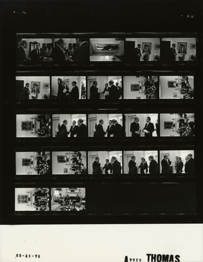 Keywords: Ford A9920 NLGRF photo contact sheet (1976-05-20)(Gerald Ford Library).jpg White House Photographic Office WHPO is housed at the Gerald R Ford Presidential Library a branch of the National Archives and Records Administration NARA <br/><br/> This file is a 200 dpi photo contact sheet having images from roll of film A9920 of the August 9 1974 - January 20 1977 Gerald R Ford White House Photographic Office Series A0001-A9999 and B0001-B2886 photographs <br/><br/> The date on the photo contact sheet is the date the roll of film was processed not necessarily the date the photographs were taken See table below for additional details 1976-05-20 Gerald R Ford Presidential Library Image http //www fordlibrarymuseum gov/library/whphotos/A9920_NLGRF jpg A9920_NLGRF jpg from http //www fordlibrarymuseum gov/library/whphotos/19760520whpo pdf White House Photographs May 20 1976 of the http //www fordlibrarymuseum gov/Library/whphotos/whpo asp White House Photographic Collection page White House Photographic Office WHPO - Thomas PD-USGov Institution Institution Gerald R Ford Presidential Library Table wikitable sortable + Photo contact sheet A9920 U S President Ford Administration Gerald R Ford Library Frame s Tone Subject proper Subject generic Names Geographic Location Photographer Date - 4A-5A BW Luncheon Meeting to Discuss Economic Issues with Economic Policy Board ExecComm and 10 Outside Economists; Brookings Institution Senior Fellow Okun former CEA member and chairman ; AEI resident scholar Fellner CEA member Yale professor GRF Okun handshaking; Fellner in background GRF Arthur Okun William Fellner Second Floor - Family Dining Room Thomas 1976-05-20 - 6A BW Meeting to discuss North Atlantic Treaty Organization NATO Issues; Supreme Allied Commander in Europe Haig standing in doorway to Oval Office Haig Scheduling and Advance Office Thomas 1976-05-21 - 7A-9A BW Meeting to discuss North Atlantic Treaty Organization NATO Issues; Supreme Allied Commander in Europe Haig standing talking Haig O'Donnell Scheduling and Advance Office Thomas 1976-05-21 - 10A-14A BW Presentation of Diplomatic Credentials from Ambassador-designate of Republic of Bolivia to the US; Asst Chief of Protocol Davis; Staet Deparatment Escort Officer Cookin AsstSecState Inter-Amer Affairs Rogers standing handshaking; seated in chairs by fireplace; all may not be shown GRF Hampton Davis Ambdesignate Alberto Crespo Gutierrez Richard Cookin William D Rogers Oval Office Thomas 1976-05-21 - 15A-20A BW Presentation of Diplomatic Credentials from Ambassador-designate of Czechoslovak Socialist Repubilc to the US standing handshaking; seated in chairs by fireplace GRF Amb-designate Jaromir Johanes Oval Office Thomas 1976-05-21 - 21A-25A BW Presentation of Diplomatic Credentials from Ambassador-designate of Yemen Arab Republic to the US; Asst Chief of Protocol Davis; DepAsstSecState Near Eastern and South Asian Affairs Sober standing handshaking; seated in chairs by fireplace GRF Yahya al-Mutawakkil Hampton Davis Sidney Sober Interpreter Gerald Lampe Oval Office Thomas 1976-05-21 Gerald R Ford Presidential Library and Museum-cooperation PD-USGov Contact sheets by the Ford White House May 1976 |