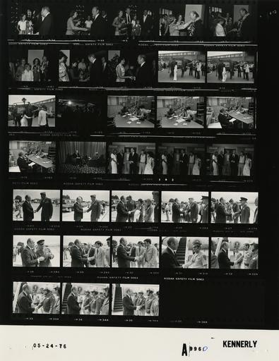 | Keywords: Ford A9960 NLGRF photo contact sheet (1976-05-24)(Gerald Ford Library).jpg White House Photographic Office WHPO is housed at the Gerald R Ford Presidential Library a branch of the National Archives and Records Administration NARA <br/><br/> This file is a 200 dpi photo contact sheet having images from roll of film A9960 of the August 9 1974 - January 20 1977 Gerald R Ford White House Photographic Office Series A0001-A9999 and B0001-B2886 photographs <br/><br/> The date on the photo contact sheet is the date the roll of film was processed not necessarily the date the photographs were taken See table below for additional details 1976-05-24 Gerald R Ford Presidential Library Image http //www fordlibrarymuseum gov/library/whphotos/A9960_NLGRF jpg A9960_NLGRF jpg from http //www fordlibrarymuseum gov/library/whphotos/19760524whpo pdf White House Photographs May 24 1976 of the http //www fordlibrarymuseum gov/Library/whphotos/whpo asp White House Photographic Collection page White House Photographic Office WHPO <br/> Creator David Hume Kennerly PD-USGov Institution Institution Gerald R Ford Presidential Library Table wikitable sortable + Photo contact sheet A9960 U S President Ford Administration Gerald R Ford Library Frame s Tone Subject proper Subject generic Names Geographic Location Photographer Date - 3-10 BW Trip to California; PFC Breakfast Reception - Laguna Hills California standing handshaking posing; leis GRF Unidentified Men Women Laguna Hills CA Hilton Hotel - Ballroom Kennerly 1976-05-24 - 11-13 BW Trip to California; PFC Breakfast Reception - Laguna Hills California GRF standing outside in parking lot petting elephant wearing President ford '76 sign talking to trainer GRF elephant elephant trainer O'Donnell Secret Service Others Laguna Hills CA Hilton Hotel - Exterior Kennerly 1976-05-24 - 14 BW Trip to California; 56th Annual Convention of California Peace Officers Association CPOA ; Remarks - Anaheim California GRF at podium camera behind platform facing audience GRF Audience Platform Guests Anaheim CA Sheraton Anaheim Hotel Kennerly 1976-05-24 - 15-18 BW Trip to California; Meeting with Chief of Staff and others - Anaheim California R-D Cheney seated at table together; joined by GRF in last two frames; Cheney smoking GRF Cheney Raoul-Duval O'Donnell Anaheim CA Sheraton Anaheim Hotel - Holding Room Kennerly 1976-05-24 - 19 BW Trip to California; Interview with James L Cooper news commentator for KOCE-TV Anaheim - Anaheim California seated interviewing GRF James L Cooper Anaheim CA Sheraton Anaheim Hotel - Meeting Room Kennerly 1976-05-24 - 20-22 BW Trip to California -Anaheim California standing together talking posing GRF Unidentified Men Women Anaheim CA Sheraton Anaheim Hotel - Holding Room Kennerly 1976-05-24 - 23-30 BW Trip to California; Airport Departure; Nevada Attorney General List - El Toro California handshaking by limo GRF Unidentified Marine officers Women Robert List Others El Toro CA E1 Toro Marine Corps Air Station Kennerly 1976-05-24 - 31-35 BW Trip to California; Airport Departure - El Toro California handshaking with California Highway Patrol on tarmac in front of plane GRF Police Officers El Toro CA E1 Toro Marine Corps Air Station Kennerly 1976-05-24 Gerald R Ford Presidential Library and Museum-cooperation PD-USGov Contact sheets by the Ford White House May 1976 Photographs by David Hume Kennerly from 1976 |