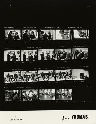 Keywords: Ford A9986 NLGRF photo contact sheet (1976-05-27)(Gerald Ford Library).jpg White House Photographic Office WHPO is housed at the Gerald R Ford Presidential Library a branch of the National Archives and Records Administration NARA <br/><br/> This file is a 200 dpi photo contact sheet having images from roll of film A9986 of the August 9 1974 - January 20 1977 Gerald R Ford White House Photographic Office Series A0001-A9999 and B0001-B2886 photographs <br/><br/> The date on the photo contact sheet is the date the roll of film was processed not necessarily the date the photographs were taken See table below for additional details 1976-05-27 Gerald R Ford Presidential Library Image http //www fordlibrarymuseum gov/library/whphotos/A9986_NLGRF jpg A9986_NLGRF jpg from http //www fordlibrarymuseum gov/library/whphotos/19760527whpo pdf White House Photographs May 27 1976 of the http //www fordlibrarymuseum gov/Library/whphotos/whpo asp White House Photographic Collection page White House Photographic Office WHPO - Thomas PD-USGov Institution Institution Gerald R Ford Presidential Library Table wikitable sortable + Photo contact sheet A9986 U S President Ford Administration Gerald R Ford Library Frame s Tone Subject proper Subject generic Names Geographic Location Photographer Date - 4A-6A BW Meeting to Discuss the Administrations Motor Carrier Reform Proposal with North Carolina Trucking Officials standing talking GRF Unidentified Men Cannon Cabinet Room Thomas 1976-05-27 - 7A-8A BW CEA Chairman Alan Greenspan Returning to White House from Tennis Courts climbing steps to colonnade in shorts carrying tennis rackets Greenspan Unidentified Man Colonnade Thomas 1976-05-27 - 9A-17A BW Farewell visit with Departing Ambassador of Liberia to the US standing handshaking; seated in chairs by fireplace GRF Amb S Edward Peal Oval Office Thomas 1976-05-27 - 18A BW Unidentified Desk Thomas 1976-05-27 - 19A-22A BW Viewing PFC Primary Campaign Television Commericials; PFC DepChrm for Political Organization Spencer; Director's Circle film director Herriot greeting seated at table watching television not shown GRF Don Penny Schneider Paul Herriot Stuart Spencer Cheney Raoul-Duval; Kennerly Nessen Cabinet Room Thomas 1976-05-27 Gerald R Ford Presidential Library and Museum-cooperation PD-USGov Contact sheets by the Ford White House May 1976 |