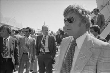 | Keywords: Ford at McClellan 5 Sept 1975 A6311-09.jpg  McClellan Air Force Base 7 miles northeast of Sacramento California at 3 10 PM<ref> Citation White House September 5 1975 Daily Diary of President Gerald R Ford September 45 1975 President's Daily Diary Collection Box 77 at the Gerald R Ford Presidential Library 12 http //www fordlibrarymuseum gov/library/document/0036/pdd750905 pdf November 26 2012 </ref> on September 5 1975 after the 10 04 am assassination attempt by Lynette Squeaky Fromme on his life President Ford waits to board Air Force One and return to Washington Also shown are Secret Service agents including Larry Buendorf in foreground with sunglasses and Chief of Staff Don Rumsfeld descending ramp of plane 1975-09-05 Gerald R Ford Presidential Library Image http //www fordlibrarymuseum gov/images/avproj/pop-ups/A6311-09 html A6311-09 from http //www fordlibrarymuseum gov/avproj/assassinations asp Fordlibrarymuseum gov Assassination Attempts September 1975 photo essay David Hume Kennerly PD-USGov Institution Institution Gerald R Ford Presidential Museum References Reflist Gerald R Ford Presidential Library and Museum-cooperation PD-USGov Ford assassination attempt in Sacramento Gerald Ford in 1975 Photographs at the Gerald R Ford Presidential Library and Museum Larry Buendorf |