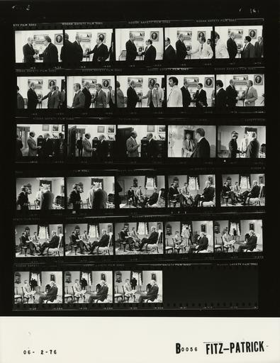 | Keywords: Ford B0056 NLGRF photo contact sheet (1976-06-01)(Gerald Ford Library).jpg White House Photographic Office WHPO is housed at the Gerald R Ford Presidential Library a branch of the National Archives and Records Administration NARA <br/><br/> This file is a 200 dpi photo contact sheet having images from roll of film B0056 of the August 9 1974 - January 20 1977 Gerald R Ford White House Photographic Office Series A0001-A9999 and B0001-B2886 photographs <br/><br/> The date on the photo contact sheet is the date the roll of film was processed not necessarily the date the photographs were taken See table below for additional details 1976-06-01 Gerald R Ford Presidential Library Image http //www fordlibrarymuseum gov/library/whphotos/B0056_NLGRF jpg B0056_NLGRF jpg from http //www fordlibrarymuseum gov/library/whphotos/19760601whpo pdf White House Photographs June 1 1976 of the http //www fordlibrarymuseum gov/Library/whphotos/whpo asp White House Photographic Collection page White House Photographic Office WHPO - Fitz-Patrick PD-USGov Institution Institution Gerald R Ford Presidential Library Table wikitable sortable + Photo contact sheet B0056 U S President Ford Administration Gerald R Ford Library Frame s Tone Subject proper Subject generic Names Geographic Location Photographer Date - 3-12 BW Prior to Interview with California Newspaper Correspondents greeting handshaking; all not in every frame GRF Joseph Albright Bill Broom Gil Bailey Frank Kane Richard Maloy Edward Neilan L Edgar Prina Jack Nelson Andy Abramson Thomas Ochiltree Oval Office Fitz-Patrick 1976-06-01 - 13-15 BW Prior to Interview with Dayton Ohio OH News Anchorman greeting handshaking standing talking GRF Wesley Bouslog Don Wayne President's Private Office Fitz-Patrick 1976-06-01 - 16 BW Prior to Interview with WJW-TV Cleveland Ohio OH Co-Anchors greeting handshaking GRF Unidentified Man Jeff Maynor James Hale Ground Floor -Map Room Fitz-Patrick 1976-06-01 - 17 BW Prior to Interview with WJW-TV Cleveland Ohio OH Co-Anchors greeting handshaking GRF Unidentified Man Jeff Maynor James Hale Ground Floor -Map Room Fitz-Patrick 1976-06-01 - 18-19 BW Prior to Interview with WJW-TV Cleveland Ohio OH Co-Anchors standing talking GRF Jeff Maynor James Hale Ground Floor -Map Room Fitz-Patrick 1976-06-01 - 20-25 BW Interview with WJW-TV Cleveland Ohio OH Co-Anchors seated talking GRF Jeff Maynor James Hale Ground Floor -Map Room Fitz-Patrick 1976-06-01 - 26-30 BW Interview with WKRC-TV Cincinnati Ohio OH Newsman seated talking GRF Nick Clooney Ground Floor -Map Room Fitz-Patrick 1976-06-01 Gerald R Ford Presidential Library and Museum-cooperation PD-USGov Contact sheets by the Ford White House June 1976 |