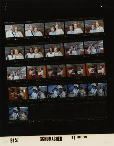 | Keywords: Ford B0157 NLGRF photo contact sheet (1976-06-07)(Gerald Ford Library).jpg White House Photographic Office WHPO is housed at the Gerald R Ford Presidential Library a branch of the National Archives and Records Administration NARA <br/><br/> This file is a 200 dpi photo contact sheet having images from roll of film B0157 of the August 9 1974 - January 20 1977 Gerald R Ford White House Photographic Office Series A0001-A9999 and B0001-B2886 photographs <br/><br/> The date on the photo contact sheet is the date the roll of film was processed not necessarily the date the photographs were taken See table below for additional details 1976-06-07 Gerald R Ford Presidential Library Image http //www fordlibrarymuseum gov/library/whphotos/B0157_NLGRF jpg B0157_NLGRF jpg from http //www fordlibrarymuseum gov/library/whphotos/19760607whpo pdf White House Photographs June 7 1976 of the http //www fordlibrarymuseum gov/Library/whphotos/whpo asp White House Photographic Collection page White House Photographic Office WHPO - Schumacher PD-USGov Institution Institution Gerald R Ford Presidential Library Table wikitable sortable + Photo contact sheet B0157 U S President Ford Administration Gerald R Ford Library Frame s Tone Subject proper Subject generic Names Geographic Location Photographer Date - 3-4 Color First Lady's Trip to Michigan -Flight from California to Grand Rapids Michigan smiling laughing posing; C-9 Convair Aircraft Betty Ford Frank Domenico C-9 Convair Aircraft Schumacher 1976-06-07 - 5-7 Color First Lady's Trip to Michigan -Flight from California to Grand Rapids Michigan smiling laughing posing; East Wing Staff; C-9 Convair Aircraft Betty Ford Unidentified Woman C-9 Convair Aircraft Schumacher 1976-06-07 - 8-9 Color First Lady's Trip to Michigan -Flight from California to Grand Rapids Michigan smiling laughing posing; East Wing Staff; C-9 Convair Aircraft Betty Ford Patty Young C-9 Convair Aircraft Schumacher 1976-06-07 - 11-13 Color First Lady's Trip to Michigan -Flight from California to Grand Rapids Michigan smiling posing; C-9 Convair Aircraft Betty Ford Frank Domenico Jerry Ball John Bay Timothy McCarthy C-9 Convair Aircraft Schumacher 1976-06-07 - 14-18 Color First Lady's Trip to Michigan -Flight from California to Grand Rapids Michigan seated across aisle talking; taken from behind; C-9 Convair Aircraft Betty Ford Unidentified Woman Media C-9 Convair Aircraft Schumacher 1976-06-07 - 19-23 Color First Lady's Campaign Trip to Michigan - Arrival in Grand Rapids Michigan greeting handshaking standing talking; C-9 Convair Aircraft in background Betty Ford Military Personnel Others Grand Rapids MI Kent County Airport Schumacher 1976-06-07 Gerald R Ford Presidential Library and Museum-cooperation PD-USGov Contact sheets by the Ford White House June 1976 |
