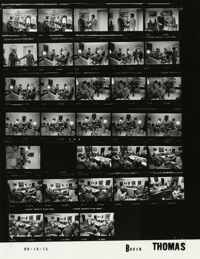 Keywords: Ford B0215 NLGRF photo contact sheet (1976-06-15)(Gerald Ford Library).jpg White House Photographic Office WHPO is housed at the Gerald R Ford Presidential Library a branch of the National Archives and Records Administration NARA <br/><br/> This file is a 200 dpi photo contact sheet having images from roll of film B0215 of the August 9 1974 - January 20 1977 Gerald R Ford White House Photographic Office Series A0001-A9999 and B0001-B2886 photographs <br/><br/> The date on the photo contact sheet is the date the roll of film was processed not necessarily the date the photographs were taken See table below for additional details 1976-06-15 Gerald R Ford Presidential Library Image http //www fordlibrarymuseum gov/library/whphotos/B0215_NLGRF jpg B0215_NLGRF jpg from http //www fordlibrarymuseum gov/library/whphotos/19760615whpo pdf White House Photographs June 15 1976 of the http //www fordlibrarymuseum gov/Library/whphotos/whpo asp White House Photographic Collection page White House Photographic Office WHPO - Thomas PD-USGov Institution Institution Gerald R Ford Presidential Library Table wikitable sortable + Photo contact sheet B0215 U S President Ford Administration Gerald R Ford Library Frame s Tone Subject proper Subject generic Names Geographic Location Photographer Date - 4A-5A B standing talking near fireplace; long shot from across room Three Unidentified Men Cabinet Room Thomas 1976-06-15 - 6A-8A B Meeting with Leader of the Progressive Conservative Party of Canada greeting handshaking standing talking GRF Charles Joseph Joe Clark Oval Office Thomas 1976-06-15 - 9A B Meeting with Leader of the Progressive Conservative Party of Canada -Ambassador of Canada to the US greeting handshaking standing talking GRF Jack H Warren Oval Office Thomas 1976-06-15 - 10A-11A B Meeting with Leader of the Progressive Conservative Party of Canada -Ambassador of Canada to the US seated around table near fireplace talking GRF Charles Joseph Joe Clark Jack H Warren Scowcroft Seidman Oval Office Thomas 1976-06-15 - 12A-13A B Meeting with Leader of the Progressive Conservative Party of Canada -Ambassador of Canada to the US Kissinger entering room; Clark and Warren rising; greeting handshaking GRF Charles Joseph Joe Clark Jack H Warren Scowcroft Seidman Kissinger Oval Office Thomas 1976-06-15 - 14A-15A B Meeting with Leader of the Progressive Conservative Party of Canada -Ambassador of Canada to the US seated around table near fireplace talking GRF Charles Joseph Joe Clark Jack H Warren Scowcroft Seidman Kissinger Oval Office Thomas 1976-06-15 - 16A-18A B Meeting with Leader of the Progressive Conservative Party of Canada seated near fireplace talking GRF Charles Joseph Joe Clark Oval Office Thomas 1976-06-15 - 19A-24A B Meeting with Leader of the Progressive Conservative Party of Canada -Ambassador of Canada to the US seated around table near fireplace talking GRF Charles Joseph Joe Clark Jack H Warren Scowcroft Seidman Kissinger Oval Office Thomas 1976-06-15 - 25A B Thomas 1976-06-15 - 26A-36A B Preparatory Meeting for the Economic Summit Meeting in Puerto Rico - Representatives from Great Britain Japan France Germany Italy Canada Unitred States seated around table; talking; various angles and distances; all not in every frame GRF D Mitchell J Hunt A Campbell K Watanabi B Yoshino H Fukada J de Larosiere H Froment-Meurice O Poehl Mueller-Thuns A Jelonek R Ossola S Palumbo M Mondello E Yeo III P Towe I Head W Hood Others Roosevelt Room Thomas 1976-06-15 Gerald R Ford Presidential Library and Museum-cooperation PD-USGov Contact sheets by the Ford White House June 1976 |
