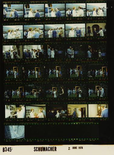 Keywords: Ford B0345 NLGRF photo contact sheet (1976-06-22)(Gerald Ford Library).jpg White House Photographic Office WHPO is housed at the Gerald R Ford Presidential Library a branch of the National Archives and Records Administration NARA <br/><br/> This file is a 200 dpi photo contact sheet having images from roll of film B0345 of the August 9 1974 - January 20 1977 Gerald R Ford White House Photographic Office Series A0001-A9999 and B0001-B2886 photographs <br/><br/> The date on the photo contact sheet is the date the roll of film was processed not necessarily the date the photographs were taken See table below for additional details 1976-06-22 Gerald R Ford Presidential Library Image http //www fordlibrarymuseum gov/library/whphotos/B0345_NLGRF jpg B0345_NLGRF jpg from http //www fordlibrarymuseum gov/library/whphotos/19760622whpo pdf White House Photographs June 22 1976 of the http //www fordlibrarymuseum gov/Library/whphotos/whpo asp White House Photographic Collection page White House Photographic Office WHPO - Schumacher PD-USGov Institution Institution Gerald R Ford Presidential Library Table wikitable sortable + Photo contact sheet B0345 U S President Ford Administration Gerald R Ford Library Frame s Tone Subject proper Subject generic Names Geographic Location Photographer Date - 1A-3A Color First Lady's Trip to New York - Arrival at LaGuardia International Airport - Friend of President Mrs Ford greeting handshaking at base of stairway from C-9 Aircraft; C9 in background Betty Ford Milton Hoffman New York NY La Guardia International Airport - Marine Air Terminal Schumacher 1976-06-22 - 4A-7A Color First Lady's Trip to New York - Arrival at LaGuardia International Airport greeting handshaking at base of stairway from C-9 Aircraft; C9 in background Betty Ford Others New York NY La Guardia International Airport - Marine Air Terminal Schumacher 1976-06-22 - 8A-9A Color First Lady's Trip to New York - Arrival at LaGuardia International Airport - Friend of President Mrs Ford greeting handshaking at base of stairway from C-9 Aircraft; C9 in background Betty Ford Milton Hoffman; Others New York NY La Guardia International Airport - Marine Air Terminal Schumacher 1976-06-22 - 10A Color First Lady's Trip to New York - Arrival at Martin Steinburg Cultural Center - President American Jewish Congress greeting handshaking; limousine and building in background Betty Ford Rabbi Arthur Hertzberg New York NY Martin Steinburg Cultural Center -Outside Schumacher 1976-06-22 - 11A-12A Color First Lady's Trip to New York - Arrival at Martin Steinburg Cultural Center - President American Jewish Congress; Friend of President Mrs Ford Hertzberg escorting BF; Hoffman and others following Betty Ford Rabbi Arthur Hertzberg Milton Hoffman; Others New York NY Martin Steinburg Cultural Center -Outside Schumacher 1976-06-22 - 13A-14A Color First Lady's Trip to New York - Ceremony at Martin Steinburg Cultural Center - Senior Vice President American Jewish Congress Squadron at microphone speaking; BF standing to left; garden wall and hedge in background Betty Ford Howard Squadron New York NY Martin Steinburg Cultural Center -Garden Schumacher 1976-06-22 - 15A Color First Lady's Trip to New York - Ceremony at Martin Steinburg Cultural Center - President American Jewish Congress; Senior Vice President American Jewish Congress Hertzberg attaching Mezuzh to doorway; others watching Betty Ford Rabbi Arthur Hertzberg Howard Squadron; Others New York NY Martin Steinburg Cultural Center -Garden Schumacher 1976-06-22 - 16A-19A Color First Lady's Trip to New York - Ceremony at Martin Steinburg Cultural Center - President American Jewish Congress; Senior Vice President American Jewish Congress Hertzberg presenting BF with Silver Mezuzah; others standing nearby Betty Ford Rabbi Arthur Hertzberg Howard Squadron; Others New York NY Martin Steinburg Cultural Center -Garden Schumacher 1976-06-22 - 20A-21A Color First Lady's Trip to New York - Ceremony at Martin Steinburg Cultural Center - President American Jewish Congress; Senior Vice President American Jewish Congress BF at microphone holding Silver Mezuzah; others standing nearby Betty Ford Rabbi Arthur Hertzberg Howard Squadron; Others New York NY Martin Steinburg Cultural Center -Garden Schumacher 1976-06-22 - 22A-25A Color First Lady's Trip to New York - Ceremony at Martin Steinburg Cultural Center - President American Jewish Congress; Senior Vice President American Jewish Congress posing; Silver Mezuzah resting on easel; All not in every frame Betty Ford Rabbi Arthur Hertzberg Howard Squadron; Others New York NY Martin Steinburg Cultural Center -Garden Schumacher 1976-06-22 - 26A-27A Color First Lady's Trip to New York - Ceremony at Martin Steinburg Cultural Center - President American Jewish Congress; Chairman Woman's Division American Jewish Congress BF looking at exhibit; only BF in both frames Betty Ford Rabbi Arthur Hertzberg Unidentified Woman Leona Chanin Mrs Martin Steinberg ; Others New York NY Martin Steinburg Cultural Center Schumacher 1976-06-22 - 28A Color First Lady's Trip to New York - Arrival at Hilton Hotel greeting handshaking as BF steps out of limousine; canopy in background Betty Ford Joergen Hansen New York NY New York Hilton - Outside Schumacher 1976-06-22 - 29A-30A Color First Lady's Trip to New York - Prior to the Jewish National Fund Dinner for the American Bicentennial National Park in Israel walking in room smiling Betty Ford Milton Hoffman New York NY New York Hilton - First Lady's Suite Schumacher 1976-06-22 - 31A Color First Lady's Trip to New York - Prior to the Jewish National Fund Dinner for the American Bicentennial National Park in Israel view out window to street below New York NY New York Hilton - First Lady's Suite Schumacher 1976-06-22 Gerald R Ford Presidential Library and Museum-cooperation PD-USGov Contact sheets by the Ford White House June 1976