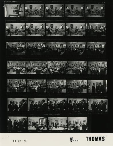 Keywords: Ford B0361 NLGRF photo contact sheet (1976-06-24)(Gerald Ford Library).jpg White House Photographic Office WHPO is housed at the Gerald R Ford Presidential Library a branch of the National Archives and Records Administration NARA <br/><br/> This file is a 200 dpi photo contact sheet having images from roll of film B0361 of the August 9 1974 - January 20 1977 Gerald R Ford White House Photographic Office Series A0001-A9999 and B0001-B2886 photographs <br/><br/> The date on the photo contact sheet is the date the roll of film was processed not necessarily the date the photographs were taken See table below for additional details 1976-06-24 Gerald R Ford Presidential Library Image http //www fordlibrarymuseum gov/library/whphotos/B0361_NLGRF jpg B0361_NLGRF jpg from http //www fordlibrarymuseum gov/library/whphotos/19760624whpo pdf White House Photographs June 24 1976 of the http //www fordlibrarymuseum gov/Library/whphotos/whpo asp White House Photographic Collection page White House Photographic Office WHPO - Thomas PD-USGov Institution Institution Gerald R Ford Presidential Library Table wikitable sortable + Photo contact sheet B0361 U S President Ford Administration Gerald R Ford Library Frame s Tone Subject proper Subject generic Names Geographic Location Photographer Date - 4A BW Meeting with Chairman of the New York Republican State Committee standing talking GRF Richard Rosenbaum Oval Office Thomas 1976-06-24 - 5A-12A BW Meeting with Chairman of the New York Republican State Committee seated on sofas near fireplace talking GRF Richard Rosenbaum Cheney Oval Office Thomas 1976-06-24 - 13A-27A BW Meeting with Jewish Leaders seated around table GRF M Fisher L Bell H Blumberg J Cohen H Dobbs I Field G Glazer L Goldfine A Grass M Hassenfeld M Hecht Kaufman Klein Lansburgh J Lmeyerhoff Miller Norry Novack Robinson Russell Schacter Schwartz Strelitz Zacks Others Cabinet Room Thomas 1976-06-24 - 28A-35A BW Meeting with Jewish Leaders - Presidents of Barton's Candy Company Haynes Furniture Company R G Barry Corporation greeting handshaking standing talking; only GRF and Fisher in all frames GRF M Fisher G Klein L Strelitz G Zacks Lissy Oval Office Thomas 1976-06-24 - 36A-37 BW Meeting with Jewish Leaders - Presidents of Barton's Candy Company Haynes Furniture Company R G Barry Corporation standing talking near desk; long shots from across room GRF Unidentified Man G Klein L Strelitz G Zacks Oval Office Thomas 1976-06-24 Gerald R Ford Presidential Library and Museum-cooperation PD-USGov Contact sheets by the Ford White House June 1976 |