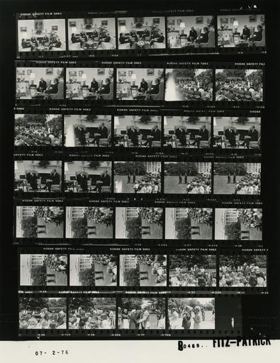 | Keywords: Ford B0469 NLGRF photo contact sheet (1976-07-02)(Gerald Ford Library).jpg White House Photographic Office WHPO is housed at the Gerald R Ford Presidential Library a branch of the National Archives and Records Administration NARA <br/><br/> This file is a 200 dpi photo contact sheet having images from roll of film B0469 of the August 9 1974 - January 20 1977 Gerald R Ford White House Photographic Office Series A0001-A9999 and B0001-B2886 photographs <br/><br/> The date on the photo contact sheet is the date the roll of film was processed not necessarily the date the photographs were taken See table below for additional details 1976-07-02 Gerald R Ford Presidential Library Image http //www fordlibrarymuseum gov/library/whphotos/B0469_NLGRF jpg B0469_NLGRF jpg from http //www fordlibrarymuseum gov/library/whphotos/19760702whpo pdf White House Photographs July 2 1976 of the http //www fordlibrarymuseum gov/Library/whphotos/whpo asp White House Photographic Collection page White House Photographic Office WHPO - Fitz-Patrick PD-USGov Institution Institution Gerald R Ford Presidential Library Table wikitable sortable + Photo contact sheet B0469 U S President Ford Administration Gerald R Ford Library Frame s Tone Subject proper Subject generic Names Geographic Location Photographer Date - 4-6 BW Meeting with President-Director General Economic Development Bank of Tunisia; Special Rep of the President of the Tunisian Republic; Former Foreign Minister and Ambassador to US; Son of President of the Tunisian Republic; Ambassador of Tunisia to the US seated neat fireplace talking GRF Habib Bourguiba Jr Ali Hedda Scowcroft Oval Office Fitz-Patrick 1976-07-02 - 7-11 BW Meeting with Crown Prince of Norway and Wife seated talking near fireplace; taken from left of GRF GRF Crown Prince Harald of Norway; Princess Sonja Oval Office Fitz-Patrick 1976-07-02 - 12-14 BW Presentation of Bicentennial Gift from the Kingdom of Norway -Crown Prince and Princess; Ambassador of Norway to US; Aide de Camp and Lady-in-waiting; Embassy and State Department Representatives; US Senators from Minnesota MN Prince Harald at microphone speaking; others in background; long shots from back of garden crowd seated in foreground GRF Crown Prince Harald Princess Sonja Soren Christian Sommerfeldt Cmdr Mrs Stein Evju Einar Risa Warner A Pinckney Scowcroft Sens Humphrey Mondale; Crowd Rose Garden Fitz-Patrick 1976-07-02 - 15-20 BW President Church of Jesus Christ of Latter-Day Saints Mormon seated talking near fireplace GRF Spencer W Kimball Oval Office Fitz-Patrick 1976-07-02 - 21-31 BW Presentation Statuette of the Mormon Pioneer Memorial Monument - President Church of Jesus Christ of Latter-Day Saints Mormon standing near table with statuette; GRF holding statuette speaking into microphone; medium range shots; crowd in foreground on right of frame GRF Spencer W Kimball; Crowd of Kids South Lawn Fitz-Patrick 1976-07-02 - 32-35 Color Presentation Statuette of the Mormon Pioneer Memorial Monument - President Church of Jesus Christ of Latter-Day Saints Mormon greeting handshaking; various angles and distances; all not in frames GRF Spencer W Kimball Young Girls South Lawn Fitz-Patrick 1976-07-02 - 36 Color Following Presentation Statuette of the Mormon Pioneer Memorial Monument - President Church of Jesus Christ of Latter-Day Saints Mormon GRF and Kimball shaking hands; others in background; Oval Office in background GRF Spencer W Kimball; Others South Driveway Fitz-Patrick 1976-07-02 - 38 Color Following Presentation Statuette of the Mormon Pioneer Memorial Monument standing talking GRF Unidentified Woman South Driveway Fitz-Patrick 1976-07-02 Gerald R Ford Presidential Library and Museum-cooperation PD-USGov Contact sheets by the Ford White House July 1976 Spencer W Kimball Unidentified Latter-day Saints |