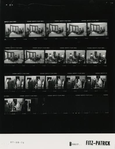 Keywords: Ford B0607 NLGRF photo contact sheet (1976-07-06)(Gerald Ford Library).jpg White House Photographic Office WHPO is housed at the Gerald R Ford Presidential Library a branch of the National Archives and Records Administration NARA <br/><br/> This file is a 200 dpi photo contact sheet having images from roll of film B0607 of the August 9 1974 - January 20 1977 Gerald R Ford White House Photographic Office Series A0001-A9999 and B0001-B2886 photographs <br/><br/> The date on the photo contact sheet is the date the roll of film was processed not necessarily the date the photographs were taken See table below for additional details 1976-07-06 Gerald R Ford Presidential Library Image http //www fordlibrarymuseum gov/library/whphotos/B0607_NLGRF jpg B0607_NLGRF jpg from http //www fordlibrarymuseum gov/library/whphotos/19760706whpo pdf White House Photographs July 6 1976 of the http //www fordlibrarymuseum gov/Library/whphotos/whpo asp White House Photographic Collection page White House Photographic Office WHPO - Fitz-Patrick PD-USGov Institution Institution Gerald R Ford Presidential Library Table wikitable sortable + Photo contact sheet B0607 U S President Ford Administration Gerald R Ford Library Frame s Tone Subject proper Subject generic Names Geographic Location Photographer Date - 3-9 BW Meeting with Speech Writing Team and Director of the Research Office seated around desk; only GRF facing camera; long shots from across room; all not in every frame; woman walking around room taking photographs GRF Marsh Cheney Hartmann Orben Douglas Smith McCall Craig Smith; Unidentified Woman Oval Office Fitz-Patrick 1976-07-06 - 10-12 BW Meeting with Second Deputy Prime Minister and Commander of the National Guard of Saudi Arabia; Deputy Commander of National Guard Ambassador from Saudi Arabia to US; State Department Interpreter GRF and Prince seated at fireplace; Najjar standing between them interpreting; others seated on sofas GRF Prince Abdallah Ibn Abd Al-Aziz Al-Saud Abdual Azia Al Tuwayjiri Ali Abdallah Alireza Kissinger Scowcroft Rumsfeld; Najib Najjar Oval Office Fitz-Patrick 1976-07-09 - 13-18 BW Gift Exchange with Second Deputy Prime Minister and Commander of the National Guard of Saudi Arabia; Deputy Commander of National Guard Ambassador from Saudi Arabia to US; State Department Interpreter standing talking looking at gifts; all not in every frame GRF Prince Abdallah Ibn Abd Al-Aziz Al-Saud Abdual Azia Al Tuwayjiri Ali Abdallah Alireza Kissinger; Najib Najjar Cabinet Room Fitz-Patrick 1976-07-09 - 19 BW Following Gift Exchange with Second Deputy Prime Minister and Commander of the National Guard of Saudi Arabia; standing talking; too dark to make out features; ID made from roll B0606 GRF Rumsfeld Unidentified Army Brigadier General Cabinet Room - Outside Fitz-Patrick 1976-07-09 Gerald R Ford Presidential Library and Museum-cooperation PD-USGov Contact sheets by the Ford White House July 1976 Brigadier generals |