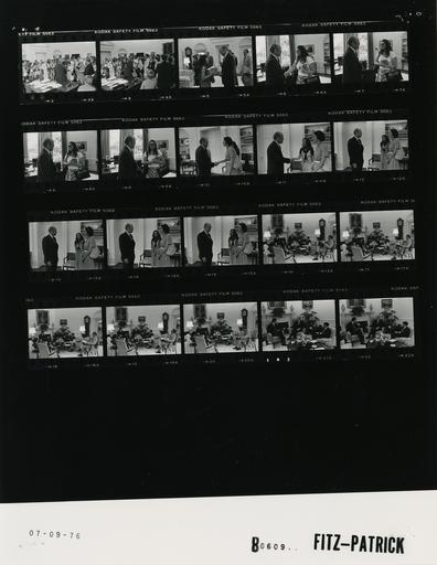 Keywords: Ford B0609 NLGRF photo contact sheet (1976-07-09)(Gerald Ford Library).jpg White House Photographic Office WHPO is housed at the Gerald R Ford Presidential Library a branch of the National Archives and Records Administration NARA <br/><br/> This file is a 200 dpi photo contact sheet having images from roll of film B0609 of the August 9 1974 - January 20 1977 Gerald R Ford White House Photographic Office Series A0001-A9999 and B0001-B2886 photographs <br/><br/> The date on the photo contact sheet is the date the roll of film was processed not necessarily the date the photographs were taken See table below for additional details 1976-07-09 Gerald R Ford Presidential Library Image http //www fordlibrarymuseum gov/library/whphotos/B0609_NLGRF jpg B0609_NLGRF jpg from http //www fordlibrarymuseum gov/library/whphotos/19760709whpo pdf White House Photographs July 9 1976 of the http //www fordlibrarymuseum gov/Library/whphotos/whpo asp White House Photographic Collection page White House Photographic Office WHPO - Fitz-Patrick PD-USGov Institution Institution Gerald R Ford Presidential Library Table wikitable sortable + Photo contact sheet B0609 U S President Ford Administration Gerald R Ford Library Frame s Tone Subject proper Subject generic Names Geographic Location Photographer Date - 3-4 BW 34th Press Conference GRF seated on desk speaking gesturing; media taking notes; various angles and distances; all not in every frame GRF Media Oval Office Fitz-Patrick 1976-07-09 - 5 BW Following 34th Press Conference standing talking GRF Unidentified Woman Oval Office Fitz-Patrick 1976-07-09 - 6-9 BW Following 34th Press Conference standing talking GRF Unidentified Woman Oval Office Fitz-Patrick 1976-07-09 - 10-15 BW Informal Meeting greeting handshaking standing talking GRF Two Unidentified women Oval Office Fitz-Patrick 1976-07-09 - 16-20 BW Briefing on the Status of the Swine Flu Vacination; Secretayr and Assistant Secetary of Health Education and Welfare HEW ; Director and Deputy Assistant for Domestic Affairs seated near fireplace talking GRF David Mathews Ted Cooper Cannon Cavanaugh Nessen Oval Office Fitz-Patrick 1976-07-09 - 21-22 BW Briefing on the Status of the Swine Flu Vacination; Secretayr and Assistant Secetary of Health Education and Welfare HEW ; Director and Deputy Assistant for Domestic Affairs seated near fireplace talking GRF David Mathews Ted Cooper Oval Office Fitz-Patrick 1976-07-09 Gerald R Ford Presidential Library and Museum-cooperation PD-USGov Contact sheets by the Ford White House July 1976 |