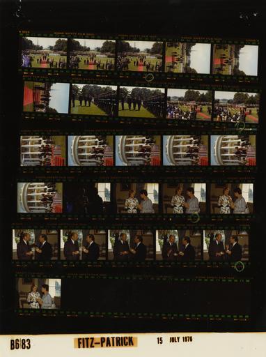 Keywords: Ford B0683 NLGRF photo contact sheet (1976-07-15)(Gerald Ford Library).jpg White House Photographic Office WHPO is housed at the Gerald R Ford Presidential Library a branch of the National Archives and Records Administration NARA <br/><br/> This file is a 200 dpi photo contact sheet having images from roll of film B0683 of the August 9 1974 - January 20 1977 Gerald R Ford White House Photographic Office Series A0001-A9999 and B0001-B2886 photographs <br/><br/> The date on the photo contact sheet is the date the roll of film was processed not necessarily the date the photographs were taken See table below for additional details 1976-07-15 Gerald R Ford Presidential Library Image http //www fordlibrarymuseum gov/library/whphotos/B0683_NLGRF jpg B0683_NLGRF jpg from http //www fordlibrarymuseum gov/library/whphotos/19760715whpo pdf White House Photographs July 15 1976 of the http //www fordlibrarymuseum gov/Library/whphotos/whpo asp White House Photographic Collection page White House Photographic Office WHPO - Fitz-Patrick PD-USGov Institution Institution Gerald R Ford Presidential Library Table wikitable sortable + Photo contact sheet B0683 U S President Ford Administration Gerald R Ford Library Frame s Tone Subject proper Subject generic Names Geographic Location Photographer Date - 3-8 Color State Arrival Ceremony for the Chancellor of the Federal Republic of Germany FRG Mrs Schmidt GRF and Helmut Schmidt on lectern backs to camera facing honor guard; others standing; long shots from Truman Balcony GRF Betty Ford Helmut Schmidt Loki Schmidt; Honor Guard Others South Lawn Fitz-Patrick 1976-07-15 - 9-10 Color State Arrival Ceremony for the Chancellor of the Federal Republic of Germany FRG Mrs Schmidt GRF and Schmidt walking past Honor Guard moving toward camera GRF Helmut Schmidt Captain of the Guard Honor Guard South Lawn Fitz-Patrick 1976-07-15 - 11-12 Color State Arrival Ceremony for the Chancellor of the Federal Republic of Germany FRG Mrs Schmidt RF and Helmut Schmidt on lectern backs to camera facing honor guard and military band; others standing; long shots from Truman Balcony GRF Betty Ford Helmut Schmidt Loki Schmidt; Honor Guard Old Guard Fife Drum Corps; Others South Lawn Fitz-Patrick 1976-07-15 - 13-16 Color State Arrival Ceremony for the Chancellor of the Federal Republic of Germany FRG Mrs Schmidt GRF and Helmut Schmidt standing on lectern GRF at microphone speaking; others standing; White House and Truman Balcony in background GRF Helmut Schmidt; Others South Lawn Fitz-Patrick 1976-07-15 - 17-18 Color State Arrival Ceremony for the Chancellor of the Federal Republic of Germany FRG Mrs Schmidt GRF and Helmut Schmidt standing on lectern Schmidt at microphone speaking; others standing; White House and Truman Balcony in background GRF Helmut Schmidt; Others South Lawn Fitz-Patrick 1976-07-15 - 19-22 Color Reception Following State Arrival Ceremony for the Chancellor of the Federal Republic of Germany FRG Mrs Schmidt standing talking; BF holding cup and saucer; 1st frame dark Betty Ford Loki Schmidt Blue Room Fitz-Patrick 1976-07-15 - 23-27 Color Reception Following State Arrival Ceremony for the Chancellor of the Federal Republic of Germany FRG Mrs Schmidt standing talking; holding cups and saucers GRF Helmut Schmidt Blue Room Fitz-Patrick 1976-07-15 - 28 Color Reception Following State Arrival Ceremony for the Chancellor of the Federal Republic of Germany FRG Mrs Schmidt standing talking; BF holding cup and saucer Betty Ford Loki Schmidt Blue Room Fitz-Patrick 1976-07-15 Gerald R Ford Presidential Library and Museum-cooperation PD-USGov Contact sheets by the Ford White House July 1976 Old Guard Fife and Drum Corps |