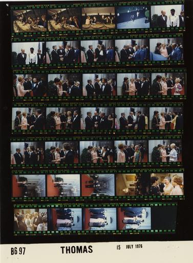 | Keywords: Ford B0697 NLGRF photo contact sheet (1976-07-15)(Gerald Ford Library).jpg White House Photographic Office WHPO is housed at the Gerald R Ford Presidential Library a branch of the National Archives and Records Administration NARA <br/><br/> This file is a 200 dpi photo contact sheet having images from roll of film B0697 of the August 9 1974 - January 20 1977 Gerald R Ford White House Photographic Office Series A0001-A9999 and B0001-B2886 photographs <br/><br/> The date on the photo contact sheet is the date the roll of film was processed not necessarily the date the photographs were taken See table below for additional details 1976-07-15 Gerald R Ford Presidential Library Image http //www fordlibrarymuseum gov/library/whphotos/B0697_NLGRF jpg B0697_NLGRF jpg from http //www fordlibrarymuseum gov/library/whphotos/19760715whpo pdf White House Photographs July 15 1976 of the http //www fordlibrarymuseum gov/Library/whphotos/whpo asp White House Photographic Collection page White House Photographic Office WHPO - Thomas PD-USGov Institution Institution Gerald R Ford Presidential Library Table wikitable sortable + Photo contact sheet B0697 U S President Ford Administration Gerald R Ford Library Frame s Tone Subject proper Subject generic Names Geographic Location Photographer Date - 3A-4A Color State Dinner in Honor of the Chancellor of the Federal Republic of Germany FRG Mrs Schmidt Helmut Schmidt standing offering toast; others seated on either side; all not in every frame; formal wear GRF Betty Ford Helmut Schmidt Loki Schmidt; Rockefeller Nancy Kissinger Hans-Dietrich Genscher Kissinger Tent/South Lawn Thomas 1976-07-15 - 5A Color State Dinner in Honor of the Chancellor of the Federal Republic of Germany FRG Mrs Schmidt standing raising glasses; all not in both frames; formal wear GRF Betty Ford Helmut Schmidt Loki Schmidt Tent/South Lawn Thomas 1976-07-15 - 6A Color State Dinner in Honor of the Chancellor of the Federal Republic of Germany FRG Mrs Schmidt walking toward South Portico; taken from Truman Balcony; formal wear GRF Betty Ford Helmut Schmidt Loki Schmidt South Driveway Thomas 1976-07-15 - 7A-8A Color Receiving Line During State Dinner in Honor of the Chancellor of the Federal Republic of Germany FRG Mrs Schmidt standing talking; formal wear GRF Military Aide Cross Hall Thomas 1976-07-15 - 9A Color Receiving Line During State Dinner in Honor of the Chancellor of the Federal Republic of Germany FRG Mrs Schmidt greeting handshaking; formal wear GRF Helmut Schmidt Unidentified Man Cross Hall Thomas 1976-07-15 - 10A Color Receiving Line During State Dinner in Honor of the Chancellor of the Federal Republic of Germany FRG Mrs Schmidt greeting handshaking; formal wear GRF Helmut Schmidt Unidentified Woman Cross Hall Thomas 1976-07-15 - 11A Color Receiving Line During State Dinner in Honor of the Chancellor of the Federal Republic of Germany FRG Mrs Schmidt - American Jazz Pop Vocalists greeting handshaking; only one Mills Brother pictured; formal wear GRF Helmut Schmidt Harry Miils Herbert Mills Alan Mills Cross Hall Thomas 1976-07-15 - 12A Color Receiving Line During State Dinner in Honor of the Chancellor of the Federal Republic of Germany FRG Mrs Schmidt - American Jazz Pop Vocalists greeting handshaking; formal wear GRF Helmut Schmidt Donald Mills Cross Hall Thomas 1976-07-15 - 13A-14A Color Receiving Line During State Dinner in Honor of the Chancellor of the Federal Republic of Germany FRG Mrs Schmidt greeting handshaking; all not in both frames; formal wear GRF Betty Ford Helmut Schmidt Loki Schmidt; Unidentified Man Cross Hall Thomas 1976-07-15 - 15A-16A Color Receiving Line During State Dinner in Honor of the Chancellor of the Federal Republic of Germany FRG Mrs Schmidt greeting handshaking; all not in both frames; formal wear GRF Betty Ford Helmut Schmidt Loki Schmidt; Karl Schumacher Cross Hall Thomas 1976-07-15 - 17A-27A Color Receiving Line During State Dinner in Honor of the Chancellor of the Federal Republic of Germany FRG Mrs Schmidt greeting handshaking; all not in every frame; formal wear GRF Betty Ford Helmut Schmidt Loki Schmidt; Others Cross Hall Thomas 1976-07-15 - 28A-29A Color Following Receiving Line During State Dinner in Honor of the Chancellor of the Federal Republic of Germany FRG Mrs Schmidt standing talking; formal wear GRF Betty Ford Helmut Schmidt Loki Schmidt Cross Hall Thomas 1976-07-15 - 30A Color Following Receiving Line During State Dinner in Honor of the Chancellor of the Federal Republic of Germany FRG Mrs Schmidt walking; formal wear GRF Loki Schmidt Cross Hall Thomas 1976-07-15 - 31A Color Entertainment at State Dinner in Honor of the Chancellor of the Federal Republic of Germany FRG Mrs Schmidt -Soprano Curtain and Pianist on stage performing; others seated in foreground backs to camera; long shot from back of room; formal wear Phyllis Curtain Pianist; guests East Room Thomas 1976-07-15 - 32A Color Entertainment at State Dinner in Honor of the Chancellor of the Federal Republic of Germany FRG Mrs Schmidt -Soprano standing talking smiling; formal wear Betty Ford Loki Schmidt Phyllis Curtain Pianist East Room Thomas 1976-07-15 - 33A Color Following Entertainment at State Dinner in Honor of the Chancellor of the Federal Republic of Germany FRG Mrs Schmidt standing talking; all not in frame; formal wear GRF Others East Room Thomas 1976-07-15 - 34A-36A Color Prior to Departure After State Dinner in Honor of the Chancellor of the Federal Republic of Germany FRG Mrs Schmidt standing talking handshaking saying goodbye; all not in every frame; formal wear GRF Betty Ford Helmut Schmidt Loki Schmidt; Others North Portico Thomas 1976-07-15 Gerald R Ford Presidential Library and Museum-cooperation PD-USGov Contact sheets by the Ford White House July 1976 |