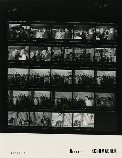 Keywords: Ford B0713 NLGRF photo contact sheet (1976-07-16)(Gerald Ford Library).jpg White House Photographic Office WHPO is housed at the Gerald R Ford Presidential Library a branch of the National Archives and Records Administration NARA <br/><br/> This file is a 200 dpi photo contact sheet having images from roll of film B0713 of the August 9 1974 - January 20 1977 Gerald R Ford White House Photographic Office Series A0001-A9999 and B0001-B2886 photographs <br/><br/> The date on the photo contact sheet is the date the roll of film was processed not necessarily the date the photographs were taken See table below for additional details 1976-07-16 Gerald R Ford Presidential Library Image http //www fordlibrarymuseum gov/library/whphotos/B0713_NLGRF jpg B0713_NLGRF jpg from http //www fordlibrarymuseum gov/library/whphotos/19760716whpo pdf White House Photographs July 16 1976 of the http //www fordlibrarymuseum gov/Library/whphotos/whpo asp White House Photographic Collection page White House Photographic Office WHPO - Schumacher PD-USGov Institution Institution Gerald R Ford Presidential Library Table wikitable sortable + Photo contact sheet B0713 U S President Ford Administration Gerald R Ford Library Frame s Tone Subject proper Subject generic Names Geographic Location Photographer Date - 3 BW Arrival for Reception in Honor of the President and First Lady Hosted by Chancellor Helmut Mrs Loki Schmidt Aboard Gorch Fock German Tall Ship walking GRF under umbrella GRF Others Baltimore MD Inner Harbor Schumacher 1976-07-16 - 4-5 BW Reception in Honor of the President and First Lady Hosted by Chancellor Helmut Schmidt Mrs Loki Aboard Gorch Fock German Tall Ship BF and man standing talking; others in background Betty Ford Unidentified Man Others Baltimore MD Onboard Gorch Fock German Tall Ship Schumacher 1976-07-16 - 6-9 BW Reception in Honor of the President and First Lady Hosted by Chancellor Helmut Schmidt Mrs Loki Aboard Gorch Fock German Tall Ship greeting handshaking standing talking; various anglews and distances; all not in every frame GRF Helmut Schmidt Others Baltimore MD Onboard Gorch Fock German Tall Ship Schumacher 1976-07-16 - 10-12 BW Reception in Honor of the President and First Lady Hosted by Chancellor Helmut Schmidt Mrs Loki Aboard Gorch Fock German Tall Ship walking talking descending ladder; touring ship; all not in every frame GRF Helmut Schmidt Others Baltimore MD Onboard Gorch Fock German Tall Ship Schumacher 1976-07-16 - 13-15 BW Reception in Honor of the President and First Lady Hosted by Chancellor Helmut Schmidt Mrs Loki Aboard Gorch Fock German Tall Ship GRF and Schmidt at microphone Schmidt talking; others in background; sail rigging in background GRF Helmut Schmidt Others Baltimore MD Onboard Gorch Fock German Tall Ship Schumacher 1976-07-16 - 16-20 BW Reception in Honor of the President and First Lady Hosted by Chancellor Helmut Schmidt Mrs Loki Aboard Gorch Fock German Tall Ship GRF and Schmidt at microphone GRF talking; others in background; sail rigging in background GRF Helmut Schmidt Others Baltimore MD Onboard Gorch Fock German Tall Ship Schumacher 1976-07-16 - 21 BW Reception in Honor of the President and First Lady Hosted by Chancellor Helmut Schmidt Mrs Loki Aboard Gorch Fock German Tall Ship GRF and man talking; others in background; sail rigging in background GRF Unidentified Man; Others Baltimore MD Onboard Gorch Fock German Tall Ship Schumacher 1976-07-16 - 22 BW Reception in Honor of the President and First Lady Hosted by Chancellor Helmut Schmidt Mrs Loki Aboard Gorch Fock German Tall Ship BF and Schmidt talking; others in background; sail rigging in background Betty Ford Loki Schmidt Others Baltimore MD Onboard Gorch Fock German Tall Ship Schumacher 1976-07-16 - 23-24 BW Following Reception in Honor of the President and First Lady Hosted by Chancellor Helmut Schmidt Mrs Loki Aboard Gorch Fock German Tall Ship descending gangway to shore Betty Ford Loki Schmidt Others Baltimore MD Onboard Gorch Fock German Tall Ship Schumacher 1976-07-16 - 25-26 BW Following Reception in Honor of the President and First Lady Hosted by Chancellor Helmut Schmidt Mrs Loki Aboard Gorch Fock German Tall Ship descending gangway to shore; GRF waving GRF Helmut Schmidt Others Baltimore MD Onboard Gorch Fock German Tall Ship Schumacher 1976-07-16 Gerald R Ford Presidential Library and Museum-cooperation PD-USGov Contact sheets by the Ford White House July 1976 |