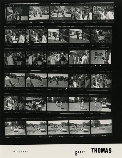 | Keywords: Ford B0807 NLGRF photo contact sheet (1976-07-25)(Gerald Ford Library).jpg White House Photographic Office WHPO is housed at the Gerald R Ford Presidential Library a branch of the National Archives and Records Administration NARA <br/><br/> This file is a 200 dpi photo contact sheet having images from roll of film B0807 of the August 9 1974 - January 20 1977 Gerald R Ford White House Photographic Office Series A0001-A9999 and B0001-B2886 photographs <br/><br/> The date on the photo contact sheet is the date the roll of film was processed not necessarily the date the photographs were taken See table below for additional details 1976-07-25 Gerald R Ford Presidential Library Image http //www fordlibrarymuseum gov/library/whphotos/B0807_NLGRF jpg B0807_NLGRF jpg from http //www fordlibrarymuseum gov/library/whphotos/19760725whpo pdf White House Photographs July 25 1976 of the http //www fordlibrarymuseum gov/Library/whphotos/whpo asp White House Photographic Collection page White House Photographic Office WHPO - Thomas PD-USGov Institution Institution Gerald R Ford Presidential Library Table wikitable sortable + Photo contact sheet B0807 U S President Ford Administration Gerald R Ford Library Frame s Tone Subject proper Subject generic Names Geographic Location Photographer Date - 3A-5A BW Arrival for Sunday Worship Services greeting handshaking walking talking GRF Betty Ford Others Washington DC Outside St John's Episcopal Church - Lafayette Square Thomas 1976-07-25 - 6A-9A BW Arrival for Sunday Worship Services - St John's Rector greeting handshaking talking GRF Betty Ford Rev Harper Others Washington DC Outside St John's Episcopal Church - Lafayette Square Thomas 1976-07-25 - 10A-11A BW Return from Sunday Worship Services GRF and Colonel talking in foreground; BF in background walking toward doorway back to camera GRF Unidentified Air Force Colonel; Betty Ford South Portico Thomas 1976-07-25 - 12A-16A BW Prior to Round of Golf with Lee Elder Buddy Clarke and John Pohanka at Congressional Country Club Bethesda Maryland standing talking; golf attire; wearing white baseball cap; all not in every frame; medium range GRF Others Bethesda MD Congressional Country Club Thomas 1976-07-25 - 17A-20A BW Prior to Round of Golf with Lee Elder Buddy Clarke and John Pohanka at Congressional Country Club Bethesda Maryland GRF practicing; caddy and others standing nearby; all not in every frame; golf attire; wearing white baseball cap GRF Caddy Others Bethesda MD Congressional Country Club -Practice Range Thomas 1976-07-25 - 21A-23A BW Prior to Round of Golf with Lee Elder Buddy Clarke and John Pohanka at Congressional Country Club Bethesda Maryland greeting handshaking standing talking; all not in every frame; golf attire; wearing white baseball cap GRF Lee Elder Rose Elder Buddy Clarke John Pohanka Bethesda MD Congressional Country Club Thomas 1976-07-25 - 24A BW Round of Golf with Lee Elder Buddy Clarke and John Pohanka at Congressional Country Club Bethesda Maryland man and woman seated in golf cart; GRF talking to woman; golf attire; holding white baseball cap GRF Unidentified Man Woman Bethesda MD Congressional Country Club Thomas 1976-07-25 - 25A-26A BW Round of Golf with Lee Elder Buddy Clarke and John Pohanka at Congressional Country Club Bethesda Maryland walking up fairway; golf attire; wearing white baseball cap GRF Lee Elder Unidentified Man Buddy Clarke John Pohanka Bethesda MD Congressional Country Club Thomas 1976-07-25 - 27A-28A BW Round of Golf with Lee Elder Buddy Clarke and John Pohanka at Congressional Country Club Bethesda Maryland GRF and Elder riding in golf cart; girl walking alongside; golf attire; wearing white baseball cap GRF Rose Elder Unidentified Girl Bethesda MD Congressional Country Club Thomas 1976-07-25 - 29A-32A BW Round of Golf with Lee Elder Buddy Clarke and John Pohanka at Congressional Country Club Bethesda Maryland Mrs Elder sitting in golf cart; others standing talking alongside cart alongside; golf attire; wearing white baseball cap; various distances GRF Lee Elder Unidentified Man Buddy Clarke John Pohanka Rose Elder Unidentified Girl Bethesda MD Congressional Country Club Thomas 1976-07-25 Gerald R Ford Presidential Library and Museum-cooperation PD-USGov Contact sheets by the Ford White House July 1976 |