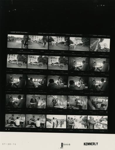 Keywords: Ford B0895 NLGRF photo contact sheet (1976-07-30)(Gerald Ford Library).jpg White House Photographic Office WHPO is housed at the Gerald R Ford Presidential Library a branch of the National Archives and Records Administration NARA <br/><br/> This file is a 200 dpi photo contact sheet having images from roll of film B0895 of the August 9 1974 - January 20 1977 Gerald R Ford White House Photographic Office Series A0001-A9999 and B0001-B2886 photographs <br/><br/> The date on the photo contact sheet is the date the roll of film was processed not necessarily the date the photographs were taken See table below for additional details 1976-07-30 Gerald R Ford Presidential Library Image http //www fordlibrarymuseum gov/library/whphotos/B0895_NLGRF jpg B0895_NLGRF jpg from http //www fordlibrarymuseum gov/library/whphotos/19760730whpo pdf White House Photographs July 30 1976 of the http //www fordlibrarymuseum gov/Library/whphotos/whpo asp White House Photographic Collection page White House Photographic Office WHPO <br/> Creator David Hume Kennerly PD-USGov Institution Institution Gerald R Ford Presidential Library Table wikitable sortable + Photo contact sheet B0895 U S President Ford Administration Gerald R Ford Library Frame s Tone Subject proper Subject generic Names Geographic Location Photographer Date - 1 BW Prior to Departure for Andrews Air Force Base Maryland GRF and O'Donnell backs to camera walking toward helicopter Marine One in background; crowd on left of frame walking toward GRF GRF O'Donnell; Crowd South Driveway Kennerly 1976-07-30 - 2 BW Meeting with Christian Youth Fellowship Bicyclists Who Bicycled from Grand Rapids Michigan to Washington DC GRF approaching group; group on driveway; Truman Balcony and South Portico in background GRF Betty Ford Christian Youth Fellowship Bicyclists; Others South Driveway Kennerly 1976-07-30 - 3-5 BW Meeting with Christian Youth Fellowship Bicyclists Who Bicycled from Grand Rapids Michigan to Washington DC walking along line of parked touring bicycles; Truman Balcony and South Portico in background GRF Betty Ford Christian Youth Fellowship Bicyclists; Others South Driveway Kennerly 1976-07-30 - 6-8 BW Meeting with Christian Youth Fellowship Bicyclists Who Bicycled from Grand Rapids Michigan to Washington DC standing posing; Truman Balcony South Portico and others in background GRF Betty Ford Christian Youth Fellowship Bicyclists; Others South Driveway Kennerly 1976-07-30 - 9-16 BW Flight From Andrews Air Force Base Maryland to Jackson Mississippi; Interview with Newsweek Correspondent seated at table talking; various angles and distances GRF Tom DeFrank Air Force One - President's Cabin Kennerly 1976-07-30 - 17-19 BW Flight From Andrews Air Force Base Maryland to Jackson Mississippi; United States Senator from Michigan standing talking looking at documents; various distances GRF Sen Griffin Air Force One - President's Cabin Kennerly 1976-07-30 - 20-22 BW Flight From Andrews Air Force Base Maryland to Jackson Mississippi; United States Senator from Michigan; US Representatives from Mississippi seated talking; various angles and distances; Griffin obscured in last 2 frames GRF Sen Griffin Reps Trent Lott Thadeus Cochran Air Force One - President's Cabin Kennerly 1976-07-30 - 23-25 BW Campaign Trip to Mississippi to Meet Mississippi Delegates and Alternates to the Republican National Convention greeting handshaking standing talking; various angles and distances; all not in every frame GRF Crowd Jackson MS Allen C Thompson Field -Tarmac Kennerly 1976-07-30 Gerald R Ford Presidential Library and Museum-cooperation PD-USGov Contact sheets by the Ford White House July 1976 Photographs by David Hume Kennerly from 1976 |