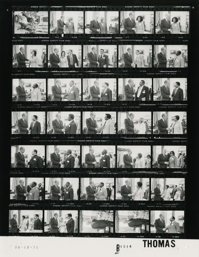 | Keywords: Ford B1014 NLGRF photo contact sheet (1976-08-10)(Gerald Ford Library).jpg White House Photographic Office WHPO is housed at the Gerald R Ford Presidential Library a branch of the National Archives and Records Administration NARA <br/><br/> This file is a 200 dpi photo contact sheet having images from roll of film B1014 of the August 9 1974 - January 20 1977 Gerald R Ford White House Photographic Office Series A0001-A9999 and B0001-B2886 photographs <br/><br/> The date on the photo contact sheet is the date the roll of film was processed not necessarily the date the photographs were taken See table below for additional details 1976-08-10 Gerald R Ford Presidential Library Image http //www fordlibrarymuseum gov/library/whphotos/B1014_NLGRF jpg B1014_NLGRF jpg from http //www fordlibrarymuseum gov/library/whphotos/19760810whpo pdf White House Photographs August 10 1976 of the http //www fordlibrarymuseum gov/Library/whphotos/whpo asp White House Photographic Collection page White House Photographic Office WHPO - Thomas PD-USGov Institution Institution Gerald R Ford Presidential Library Table wikitable sortable + Photo contact sheet B1014 U S President Ford Administration Gerald R Ford Library Frame s Tone Subject proper Subject generic Names Geographic Location Photographer Date - 2 BW Meeting with the Lionel Hampton Conference seated around table; all not in frame GRF L Hampton E Griffin T Alexander L Berry H Chavis T Daley C Dargan R English P Ellison C Groves S Jackson C Johnson L Johnson E Jones W Jordan T Logan E Parker B Phillips G Phillips O Rogers C Scroggins Others Cabinet Room Thomas 1976-08-10 - 3-36 BW Photo Opportunity with Members of the Lionel Hampton Conference greeting handshaking standing posing; portraits; all not in every frame; all not in frames GRF L Hampton E Griffin T Alexander L Berry H Chavis T Daley C Dargan R English P Ellison C Groves S Jackson C Johnson L Johnson E Jones W Jordan T Logan E Parker B Phillips G Phillips O Rogers C Scroggins Others Oval Office Thomas 1976-08-10 Gerald R Ford Presidential Library and Museum-cooperation PD-USGov Contact sheets by the Ford White House August 1976 |