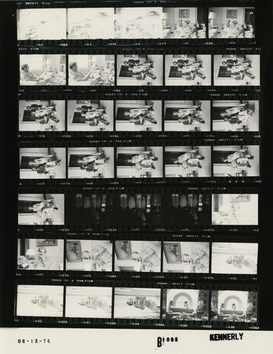 | Keywords: Ford B1055 NLGRF photo contact sheet (1976-08-13)(Gerald Ford Library).jpg White House Photographic Office WHPO is housed at the Gerald R Ford Presidential Library a branch of the National Archives and Records Administration NARA <br/><br/> This file is a 200 dpi photo contact sheet having images from roll of film B1055 of the August 9 1974 - January 20 1977 Gerald R Ford White House Photographic Office Series A0001-A9999 and B0001-B2886 photographs <br/><br/> The date on the photo contact sheet is the date the roll of film was processed not necessarily the date the photographs were taken See table below for additional details 1976-08-13 Gerald R Ford Presidential Library Image http //www fordlibrarymuseum gov/library/whphotos/B1055_NLGRF jpg B1055_NLGRF jpg from http //www fordlibrarymuseum gov/library/whphotos/19760813whpo pdf White House Photographs August 13 1976 of the http //www fordlibrarymuseum gov/Library/whphotos/whpo asp White House Photographic Collection page White House Photographic Office WHPO <br/> Creator David Hume Kennerly PD-USGov Institution Institution Gerald R Ford Presidential Library Table wikitable sortable + Photo contact sheet B1055 U S President Ford Administration Gerald R Ford Library Frame s Tone Subject proper Subject generic Names Geographic Location Photographer Date - 2-4 BW close ups; holding press conference; over-exposed GRF Press Room Kennerly 1976-08-13 - 5-18 BW Meeting with Personnel from Britches seated talking posing Betty Ford Unidentified Men Second Floor - West Sitting Room Kennerly 1976-08-13 - 19-22 BW seated on chair BF seated on arm; posing Betty Ford Capt Ross Kelly Second Floor - West Sitting Room Kennerly 1976-08-13 - 23-25 BW Rehearsal for Republican National Convention GRF standing behind table speaking; WCHA crew taping; television monitor in foreground; all not in every frame; various angles and distances GRF Don Penny WHCA Tecnhicians Cabinet Room Kennerly 1976-08-13 - 26-34 BW holding Polaroid type camera to face; holding camera down smiling in 2 frames Betty Ford Second Floor - West Sitting Room Kennerly 1976-08-13 - 35-36 BW standing in front of window; BF holding Polaroid type camera to face; shooting each other's photo Betty Ford Kennerly Second Floor - West Sitting Room Kennerly 1976-08-13 Gerald R Ford Presidential Library and Museum-cooperation PD-USGov Contact sheets by the Ford White House August 1976 Photographs by David Hume Kennerly from 1976 |