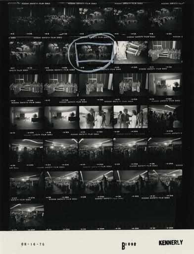 | Keywords: Ford B1092 NLGRF photo contact sheet (1976-08-16)(Gerald Ford Library).jpg White House Photographic Office WHPO is housed at the Gerald R Ford Presidential Library a branch of the National Archives and Records Administration NARA <br/><br/> This file is a 200 dpi photo contact sheet having images from roll of film B1092 of the August 9 1974 - January 20 1977 Gerald R Ford White House Photographic Office Series A0001-A9999 and B0001-B2886 photographs <br/><br/> The date on the photo contact sheet is the date the roll of film was processed not necessarily the date the photographs were taken See table below for additional details 1976-08-16 Gerald R Ford Presidential Library Image http //www fordlibrarymuseum gov/library/whphotos/B1092_NLGRF jpg B1092_NLGRF jpg from http //www fordlibrarymuseum gov/library/whphotos/19760816whpo pdf White House Photographs August 16 1976 of the http //www fordlibrarymuseum gov/Library/whphotos/whpo asp White House Photographic Collection page White House Photographic Office WHPO <br/> Creator David Hume Kennerly PD-USGov Institution Institution Gerald R Ford Presidential Library Table wikitable sortable + Photo contact sheet B1092 U S President Ford Administration Gerald R Ford Library Frame s Tone Subject proper Subject generic Names Geographic Location Photographer Date - 2A-9A BW Trip to Kansas City Missouri - Convention - Meeting with Delegates and Alternates from Hawaii and Guam to the Republican National Convention GRF at lectern speaking; others seated listening; various angles and distances; all not in every frame; floral shirts GRF Delegates Alternates from Hawaii Guam Kansas City MO Center Hotel - Centennial Room A Kennerly 1976-08-16 - 10A-13A BW Trip to Kansas City Missouri - Convention - Meeting with Delegates and Alternates from Hawaii and Guam to the Republican National Convention standing posing with state flag GRF Delegates Alternates from Hawaii Kansas City MO Center Hotel - Centennial Room A Kennerly 1976-08-16 - 14A-15A BW Trip to Kansas City Missouri - Convention - Meeting with Delegates and Alternates from Hawaii and Guam to the Republican National Convention standing posing GRF Delegates from Hawaii Kansas City MO Center Hotel - Centennial Room A Kennerly 1976-08-16 - 16A-18A BW Trip to Kansas City Missouri - Convention seated at table reading; coatless smoking pipe GRF Kansas City MO Crown Center Hotel - President's Suite Kennerly 1976-08-16 - 19A-20A BW Trip to Kansas City Missouri - Convention - Arrival for Coffee with the Presidentials President Ford Committee PFC Youth Group greeting handshaking GRF Unidentified Woman Kansas City MO K C Trade Mart - Youth Hold Center Kennerly 1976-08-16 - 21A-22A BW Trip to Kansas City Missouri - Convention - Arrival for Coffee with the Presidentials President Ford Committee PFC Youth Group GRF entering room walking; greeting handshaking; all not in frame GRF Presidentials Kansas City MO K C Trade Mart - Youth Hold Center Kennerly 1976-08-16 - 23A-32A BW Trip to Kansas City Missouri - Convention - Address to the Presidentials President Ford Committee PFC Youth Group GRF at lectern speaking; others seated; various angles and distances; all not in frames GRF Presidentials Kansas City MO K C Trade Mart - Youth Hold Center Kennerly 1976-08-16 Gerald R Ford Presidential Library and Museum-cooperation PD-USGov Contact sheets by the Ford White House August 1976 Photographs by David Hume Kennerly from 1976 |
