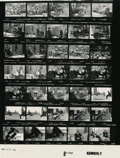 | Keywords: Ford B1100 NLGRF photo contact sheet (1976-08-17)(Gerald Ford Library).jpg White House Photographic Office WHPO is housed at the Gerald R Ford Presidential Library a branch of the National Archives and Records Administration NARA <br/><br/> This file is a 200 dpi photo contact sheet having images from roll of film B1100 of the August 9 1974 - January 20 1977 Gerald R Ford White House Photographic Office Series A0001-A9999 and B0001-B2886 photographs <br/><br/> The date on the photo contact sheet is the date the roll of film was processed not necessarily the date the photographs were taken See table below for additional details 1976-08-17 Gerald R Ford Presidential Library Image http //www fordlibrarymuseum gov/library/whphotos/B1100_NLGRF jpg B1100_NLGRF jpg from http //www fordlibrarymuseum gov/library/whphotos/19760817whpo pdf White House Photographs August 17 1976 of the http //www fordlibrarymuseum gov/Library/whphotos/whpo asp White House Photographic Collection page White House Photographic Office WHPO <br/> Creator David Hume Kennerly PD-USGov Institution Institution Gerald R Ford Presidential Library Table wikitable sortable + Photo contact sheet B1100 U S President Ford Administration Gerald R Ford Library Frame s Tone Subject proper Subject generic Names Geographic Location Photographer Date - 1A-2A BW Trip to Kansas City Missouri - Convention - Meeting with Ford Regional Whips for the Republican National Convention seated around table talking; all may not be in frames GRF R Rosenbaum F Biebel E Hillman T Kean R Ogilvie E Welden K McGough K McNamara W McGlaughlin T Milligan R Forsythe Sens Fong Beall Griffin Tower; Rep Michel; Baker White Timmons C Coray Morton Kansas City MO Crown Center Hotel - President's Suite -Office Kennerly 1976-08-17 - 3A-4A BW Trip to Kansas City Missouri - Convention standing near desk; GRF seated in 2nd frame GRF O'Donnell Kansas City MO Crown Center Hotel - President's Suite - Office Kennerly 1976-08-17 - 5A-7A BW Trip to Kansas City Missouri - Convention seated at desk talking on telephone in 1st 2 frames; standing near desk in last frame GRF Kansas City MO Crown Center Hotel - President's Suite - Office Kennerly 1976-08-17 - 8A-10A BW Trip to Kansas City Missouri - Convention standing talking near desk; Cheny's back to camera in last 2 frames GRF Cheney Kansas City MO Crown Center Hotel - President's Suite - Office Kennerly 1976-08-17 - 11A-12A BW Trip to Kansas City Missouri - Convention seated at desk talking at telephone; Steward in 2nd frame arranging 3 pipes GRF Kansas City MO Crown Center Hotel - President's Suite - Office Kennerly 1976-08-17 - 13A-14A BW Trip to Kansas City Missouri - Convention - Meeting with Mississippi Delegates and Alternates to the Republican National Convention seated around table; all may not be in frames GRF W Dease G Beal D K Shanks J T Long J L Baker J K Green J Monsour; James Baker Kansas City MO Crown Center Hotel - President's Suite -Office Kennerly 1976-08-17 - 15A BW Trip to Kansas City Missouri - Convention - Delegates and Alternates from Illinois to the Republican National Convention GRF at lectern speaking others in foreground; long shot from back of room GRF Delegates Alternates from Illinois Kansas City MO Hilton Plaza Inn - Regency Room Kennerly 1976-08-17 - 16-21 BW Trip to Kansas City Missouri - Convention seated at desk reading documents; coatless; feet on desk in 4 frames GRF Kansas City MO Crown Center Hotel - President's Suite -Office Kennerly 1976-08-17 - 22-24 BW Trip to Kansas City Missouri - Convention - Member of the Executive Board of the Republican National Committee RNC seated around desk talking GRF Thomas B Evans Kansas City MO Crown Center Hotel - President's Suite -Office Kennerly 1976-08-17 - 25-27 BW Trip to Kansas City Missouri - Convention - Meeting with Chairman of the New York Republican State Committee seated around coffee table talking GRF Rockefeller Richard Rosenbaum Cheney Scowcroft Kansas City MO Crown Center Hotel - President's Suite Kennerly 1976-08-17 - 28-30 BW Trip to Kansas City Missouri - Convention - Meeting with Chairman of the New York Republican State Committee seated on sofa talking GRF Rockefeller Kansas City MO Crown Center Hotel - President's Suite Kennerly 1976-08-17 - 31-33 BW Trip to Kansas City Missouri - Convention seated talking on telephone Cheney Kansas City MO Crown Center Hotel - President's Suite Kennerly 1976-08-17 - 33-34 BW Trip to Kansas City Missouri - Convention seated talking on telephone; Cheney in 2nd frame GRF; Cheney Kansas City MO Crown Center Hotel - President's Suite Kennerly 1976-08-17 Gerald R Ford Presidential Library and Museum-cooperation PD-USGov Contact sheets by the Ford White House August 1976 Photographs by David Hume Kennerly from 1976 |