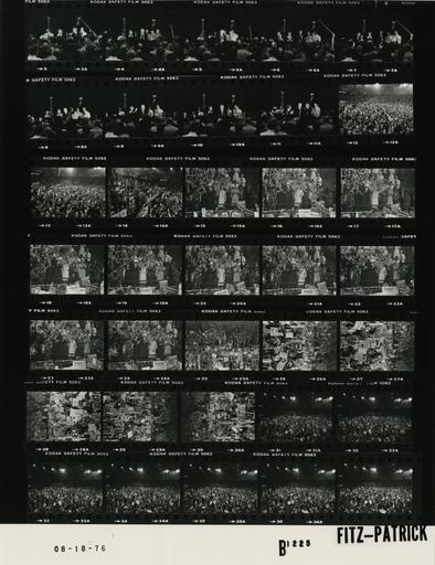 | Keywords: Ford B1225 NLGRF photo contact sheet (1976-08-18)(Gerald Ford Library).jpg White House Photographic Office WHPO is housed at the Gerald R Ford Presidential Library a branch of the National Archives and Records Administration NARA <br/><br/> This file is a 200 dpi photo contact sheet having images from roll of film B1225 of the August 9 1974 - January 20 1977 Gerald R Ford White House Photographic Office Series A0001-A9999 and B0001-B2886 photographs <br/><br/> The date on the photo contact sheet is the date the roll of film was processed not necessarily the date the photographs were taken See table below for additional details 1976-08-18 Gerald R Ford Presidential Library Image http //www fordlibrarymuseum gov/library/whphotos/B1225_NLGRF jpg B1225_NLGRF jpg from http //www fordlibrarymuseum gov/library/whphotos/19760818whpo pdf White House Photographs August 18 1976 of the http //www fordlibrarymuseum gov/Library/whphotos/whpo asp White House Photographic Collection page White House Photographic Office WHPO - Fitz-Patrick PD-USGov Institution Institution Gerald R Ford Presidential Library Table wikitable sortable + Photo contact sheet B1225 U S President Ford Administration Gerald R Ford Library Frame s Tone Subject proper Subject generic Names Geographic Location Photographer Date - 3-11 BW Trip to Kansas City Missouri - Convention - Meeting with Pennsylvania Delegates and Alternates to the Republican National Convention GRF stage speaking; others behind; delegates in foreground; taken from back of room; all not in every frame GRF Betty Ford Sen Scott Pennsylvania Delegates Alternates Kansas City MO Center Hotel -Centennial Room A Fitz-Patrick 1976-08-18 - 12-14 BW Trip to Kansas City Missouri - Convention - Demonstration at the 4th Session of the Republican National Convention standing holding various signs; various angles and distances; all not in every frame Delegates Kansas City MO Kemper Arena -Floor Fitz-Patrick 1976-08-18 - 15-24 BW Trip to Kansas City Missouri - Convention - Demonstration at the 4th Session of the Republican National Convention standing jumping applauding high-fiving embracing; all not in every frame Steve Ford Betty Ford Susan Ford Jack Ford Mike Gayle Ford Tom Janet Ford Dick Ellen Ford Sonny Bono Others Kansas City MO Kemper Arena Fitz-Patrick 1976-08-18 - 25-37 BW Trip to Kansas City Missouri - Convention - Demonstration at the 4th Session of the Republican National Convention standing holding various signs; various angles and distances; all not in every frame Delegates Kansas City MO Kemper Arena - Floor Fitz-Patrick 1976-08-18 Gerald R Ford Presidential Library and Museum-cooperation PD-USGov Contact sheets by the Ford White House August 1976 |