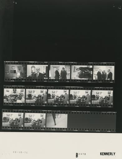 Keywords: Ford B1473 NLGRF photo contact sheet (1976-09-10)(Gerald Ford Library).jpg White House Photographic Office WHPO is housed at the Gerald R Ford Presidential Library a branch of the National Archives and Records Administration NARA <br/><br/> This file is a 200 dpi photo contact sheet having images from roll of film B1473 of the August 9 1974 - January 20 1977 Gerald R Ford White House Photographic Office Series A0001-A9999 and B0001-B2886 photographs <br/><br/> The date on the photo contact sheet is the date the roll of film was processed not necessarily the date the photographs were taken See table below for additional details 1976-09-10 Gerald R Ford Presidential Library Image http //www fordlibrarymuseum gov/library/whphotos/B1473_NLGRF jpg B1473_NLGRF jpg from http //www fordlibrarymuseum gov/library/whphotos/19760910whpo pdf White House Photographs September 10 1976 of the http //www fordlibrarymuseum gov/Library/whphotos/whpo asp White House Photographic Collection page White House Photographic Office WHPO <br/> Creator David Hume Kennerly PD-USGov Institution Institution Gerald R Ford Presidential Library Table wikitable sortable + Photo contact sheet B1473 U S President Ford Administration Gerald R Ford Library Frame s Tone Subject proper Subject generic Names Geographic Location Photographer Date - 1A BW Kennerly's desk; photos and awards on wall White House Photo Office Kennerly 1976-09-10 - 2A BW portrait; wide angle; distorted Scowcroft Scheduling and Advance Office Kennerly 1976-09-10 - 3A-5A BW Meeting with Sibley Professor of International Law University of Georgia and Former Secretary of State greeting handshaking; HAK not is 1st frame GRF Kissinger Dean Rusk Oval Office Kennerly 1976-09-10 - 6A-12A BW Meeting with Sibley Professor of International Law University of Georgia and Former Secretary of State seated near fireplace; all but 1 frame taken over HAK's right shoulder GRF Kissinger Scowcroft Dean Rusk Oval Office Kennerly 1976-09-10 Gerald R Ford Presidential Library and Museum-cooperation PD-USGov Contact sheets by the Ford White House September 1976 Photographs by David Hume Kennerly from 1976 |