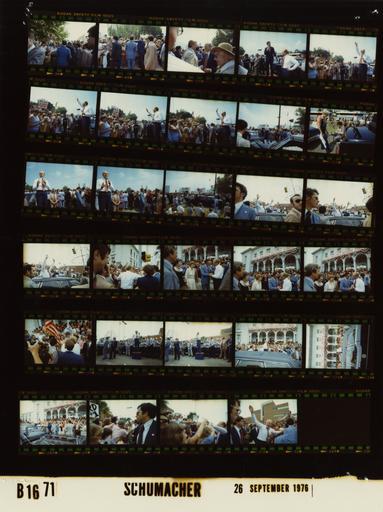 Keywords: Ford B1671 NLGRF photo contact sheet (1976-09-26)(Gerald Ford Library).jpg White House Photographic Office WHPO is housed at the Gerald R Ford Presidential Library a branch of the National Archives and Records Administration NARA <br/><br/> This file is a 200 dpi photo contact sheet having images from roll of film B1671 of the August 9 1974 - January 20 1977 Gerald R Ford White House Photographic Office Series A0001-A9999 and B0001-B2886 photographs <br/><br/> The date on the photo contact sheet is the date the roll of film was processed not necessarily the date the photographs were taken See table below for additional details 1976-09-26 Gerald R Ford Presidential Library Image http //www fordlibrarymuseum gov/library/whphotos/B1671_NLGRF jpg B1671_NLGRF jpg from http //www fordlibrarymuseum gov/library/whphotos/19760926whpo pdf White House Photographs September 26 1976 of the http //www fordlibrarymuseum gov/Library/whphotos/whpo asp White House Photographic Collection page White House Photographic Office WHPO - Schumacher PD-USGov Institution Institution Gerald R Ford Presidential Library Table wikitable sortable + Photo contact sheet B1671 U S President Ford Administration Gerald R Ford Library Frame s Tone Subject proper Subject generic Names Geographic Location Photographer Date - 3A-5A Color Campaign Trip to Mississippi - Rally in Bay St Louis MS greeting handshaking standing talking; various angles and distances; all not in every frame GRF Crowd Bay St Louis MS Near Hancock County Public Library Schumacher 1976-09-26 - 6A Color Campaign Trip to Mississippi - Rally in Bay St Louis MS Lott on platform holding microphone speaking; GRF standing nearby coatless; others in background GRF Trent Lott Crowd Bay St Louis MS Near Hancock County Public Library Schumacher 1976-09-26 - 7A-11A Color Campaign Trip to Mississippi - Rally in Bay St Louis MS GRF on platform holding microphone speaking; coatless; all not in frames; last frame long shot GRF Crowd Others Bay St Louis MS Near Hancock County Public Library Schumacher 1976-09-26 - 12A Color Campaign Trip to Mississippi - Rally in Bay St Louis MS seated next to car in parking lot; typing into transcription machine; other person standing nearby Transcriptionist Bay St Louis MS Near Hancock County Public Library Schumacher 1976-09-26 - 13A-15A Color Campaign Trip to Mississippi - Rally in Bay St Louis MS GRF on platform holding microphone speaking; coatless; all not in frames; last frame long shot GRF Crowd Others Bay St Louis MS Near Hancock County Public Library Schumacher 1976-09-26 - 16A-18A Color Campaign Trip to Mississippi GRF waving standing in limousine top half of body through sun roof; crowd and Sears store in background GRF Secret Service Crowd Gulfport MS Street Schumacher 1976-09-26 - 19A-31A Color Campaign Trip to Mississippi GRF standing through limousine sun roof speaking in shirtsleeves; Gulfport Welcomes President Ford sign hanging in background; various angles and distances; all not in every frame GRF Crowd Gulfport MS Main Post Office - Outside Schumacher 1976-09-26 Gerald R Ford Presidential Library and Museum-cooperation PD-USGov Contact sheets by the Ford White House September 1976 |