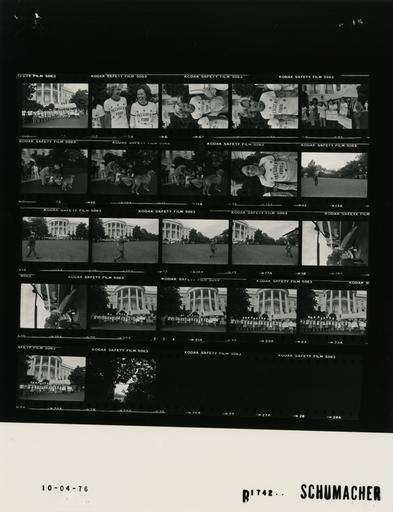 | Keywords: Ford B1742 NLGRF photo contact sheet (1976-10-04)(Gerald Ford Library).jpg White House Photographic Office WHPO is housed at the Gerald R Ford Presidential Library a branch of the National Archives and Records Administration NARA <br/><br/> This file is a 200 dpi photo contact sheet having images from roll of film B1742 of the August 9 1974 - January 20 1977 Gerald R Ford White House Photographic Office Series A0001-A9999 and B0001-B2886 photographs <br/><br/> The date on the photo contact sheet is the date the roll of film was processed not necessarily the date the photographs were taken See table below for additional details 1976-10-04 Gerald R Ford Presidential Library Image http //www fordlibrarymuseum gov/library/whphotos/B1742_NLGRF jpg B1742_NLGRF jpg from http //www fordlibrarymuseum gov/library/whphotos/19761004whpo pdf White House Photographs October 4 1976 of the http //www fordlibrarymuseum gov/Library/whphotos/whpo asp White House Photographic Collection page White House Photographic Office WHPO - Schumacher PD-USGov Institution Institution Gerald R Ford Presidential Library Table wikitable sortable + Photo contact sheet B1742 U S President Ford Administration Gerald R Ford Library Frame s Tone Subject proper Subject generic Names Geographic Location Photographer Date - 4A-8A BW Prior to GRF Departure for Andrews Air Force Base and the 2nd Presidential Debate in San Francisco CA lined along driveway in front of South Portico; some holding signs others wearing President Ford T-shirts White House staff Others South Driveway Schumacher 1976-10-04 - 9A-11A BW Prior to GRF Departure for 2nd Presidential Debate in San Francisco CA; Pet Golden Retriever on driveway in front of South Portico; staff adjusting President Ford T-shirt that dog Misty is wearing Liberty Misty White House staff South Driveway Schumacher 1976-10-04 - 12A BW Prior to GRF Departure for Andrews Air Force Base and the 2nd Presidential Debate in San Francisco CA wearing President Ford T-shirt Unidentified White House staffwoman South Driveway Schumacher 1976-10-04 - 13A-17A BW Prior to GRF Departure for Andrews Air Force Base and the 2nd Presidential Debate in San Francisco CA GRF walking across lawn waving; others and White house in far background GRF; White House staff Others South Lawn Schumacher 1976-10-04 - 18A-19A BW Prior to GRF Departure for Andrews Air Force Base and the 2nd Presidential Debate in San Francisco CA GRF in Marine One helicopter doorway waving to crowd not seen ; Keiser in foreground back to camera GRF Keiser South Lawn Schumacher 1976-10-04 - 20A-24A BW Prior to GRF Departure for Andrews Air Force Base and the 2nd Presidential Debate in San Francisco CA lined along driveway in front of South Portico; some holding signs others wearing President Ford T-shirts; vary long shots from vicinity of Marine One not seen White House staff Others South Lawn Schumacher 1976-10-04 - 25A BW Departure for Andrews Air Force Base and the 2nd Presidential Debate in San Francisco CA Marine One in flight; taken through break in trees helicopter partially obscured South Lawn Schumacher 1976-10-04 Gerald R Ford Presidential Library and Museum-cooperation PD-USGov Contact sheets by the Ford White House October 1976 |