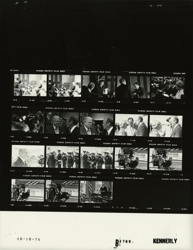 Keywords: Ford B1769 NLGRF photo contact sheet (1976-10-10)(Gerald Ford Library).jpg White House Photographic Office WHPO is housed at the Gerald R Ford Presidential Library a branch of the National Archives and Records Administration NARA <br/><br/> This file is a 200 dpi photo contact sheet having images from roll of film B1769 of the August 9 1974 - January 20 1977 Gerald R Ford White House Photographic Office Series A0001-A9999 and B0001-B2886 photographs <br/><br/> The date on the photo contact sheet is the date the roll of film was processed not necessarily the date the photographs were taken See table below for additional details 1976-10-10 Gerald R Ford Presidential Library Image http //www fordlibrarymuseum gov/library/whphotos/B1769_NLGRF jpg B1769_NLGRF jpg from http //www fordlibrarymuseum gov/library/whphotos/19761010whpo pdf White House Photographs October 10 1976 of the http //www fordlibrarymuseum gov/Library/whphotos/whpo asp White House Photographic Collection page White House Photographic Office WHPO <br/> Creator David Hume Kennerly PD-USGov Institution Institution Gerald R Ford Presidential Library Table wikitable sortable + Photo contact sheet B1769 U S President Ford Administration Gerald R Ford Library Frame s Tone Subject proper Subject generic Names Geographic Location Photographer Date - 3A-6A BW Campaign Trip to Texas - United States Senator from Texas seated talking in 1st 3 frames; standing talking in last; various angles and distances GRF Sen Tower Dallas TX Dallas-Fort Worth Airport - Airport Marina Hotel - President's Suite Kennerly 1976-10-10 - 7A-8A BW Campaign Trip to Texas - Attending Sunday Worship Services seated in pews listening; taken from left of GRF; all not in frames GRF Congregation Dallas TX First Baptist Church Kennerly 1976-10-10 - 9A-10A BW Campaign Trip to Texas - Following Sunday Worship Services standing talking; head and shoulder close ups GRF Rev Criswell Dallas TX First Baptist Church Kennerly 1976-10-10 - 11A-13A BW Campaign Trip to Texas - Prior to Departure for Andrews Air Force Base - Republican Candidate for 5th Congressional District of Texas standing talking posing GRF Nancy Judy Others Dallas TX Love Field Kennerly 1976-10-10 - 14A-15A BW Campaign Trip to Texas - Prior to Departure for Andrews Air Force Base greeting handshaking standing talking; all not in every frame Police Officers Nancy Judy Dallas TX Love Field Kennerly 1976-10-10 - 16A-20A BW Pet Golden Retrievers GRF standing near desk petting dog; both dogs not in all frames GRF Liberty Misty Oval Office Kennerly 1976-10-10 Gerald R Ford Presidential Library and Museum-cooperation PD-USGov Contact sheets by the Ford White House October 1976 Photographs by David Hume Kennerly from 1976 |