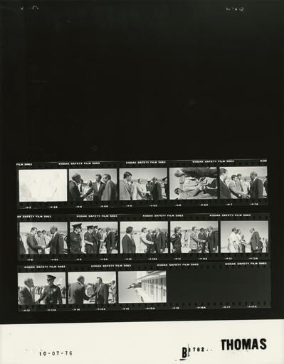 | Keywords: Ford B1782 NLGRF photo contact sheet (1976-10-08)(Gerald Ford Library).jpg White House Photographic Office WHPO is housed at the Gerald R Ford Presidential Library a branch of the National Archives and Records Administration NARA <br/><br/> This file is a 200 dpi photo contact sheet having images from roll of film B1782 of the August 9 1974 - January 20 1977 Gerald R Ford White House Photographic Office Series A0001-A9999 and B0001-B2886 photographs <br/><br/> The date on the photo contact sheet is the date the roll of film was processed not necessarily the date the photographs were taken See table below for additional details 1976-10-08 Gerald R Ford Presidential Library Image http //www fordlibrarymuseum gov/library/whphotos/B1782_NLGRF jpg B1782_NLGRF jpg from http //www fordlibrarymuseum gov/library/whphotos/19761008whpo pdf White House Photographs October 8 1976 of the http //www fordlibrarymuseum gov/Library/whphotos/whpo asp White House Photographic Collection page White House Photographic Office WHPO - Thomas PD-USGov Institution Institution Gerald R Ford Presidential Library Table wikitable sortable + Photo contact sheet B1782 U S President Ford Administration Gerald R Ford Library Frame s Tone Subject proper Subject generic Names Geographic Location Photographer Date - 3A-14A BW Campaign Trip to California; Prior to Departure for Lawton Oklahoma OK - Burbank California greeting handshaking saying goodbye; all not in every frame; first frame overexposed GRF Others Burbank CA Hollywood Burbank Airport Thomas 1976-10-08 - 15A BW Campaign Trip to California; Prior to Departure for Lawton Oklahoma OK - Burbank California standing waving at top of stairs to Air Force One; taken from bottom of steps GRF Burbank CA Hollywood Burbank Airport Thomas 1976-10-08 Gerald R Ford Presidential Library and Museum-cooperation PD-USGov Contact sheets by the Ford White House October 1976 |