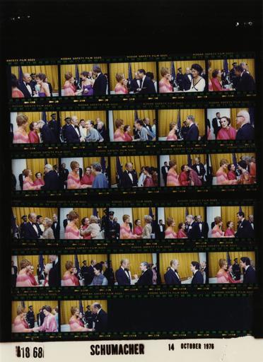 | Keywords: Ford B1868 NLGRF photo contact sheet (1976-10-14)(Gerald Ford Library).jpg White House Photographic Office WHPO is housed at the Gerald R Ford Presidential Library a branch of the National Archives and Records Administration NARA <br/><br/> This file is a 200 dpi photo contact sheet having images from roll of film B1868 of the August 9 1974 - January 20 1977 Gerald R Ford White House Photographic Office Series A0001-A9999 and B0001-B2886 photographs <br/><br/> The date on the photo contact sheet is the date the roll of film was processed not necessarily the date the photographs were taken See table below for additional details 1976-10-14 Gerald R Ford Presidential Library Image http //www fordlibrarymuseum gov/library/whphotos/B1868_NLGRF jpg B1868_NLGRF jpg from http //www fordlibrarymuseum gov/library/whphotos/19761014whpo pdf White House Photographs October 14 1976 of the http //www fordlibrarymuseum gov/Library/whphotos/whpo asp White House Photographic Collection page White House Photographic Office WHPO - Schumacher PD-USGov Institution Institution Gerald R Ford Presidential Library Table wikitable sortable + Photo contact sheet B1868 U S President Ford Administration Gerald R Ford Library Frame s Tone Subject proper Subject generic Names Geographic Location Photographer Date - 1A-27A Color Receiving Line Prior to Dinner in Honor of Martha Graham and Presentation of the Presidential Medal Of Freedom greeting handshaking standing talking posing; formal wear; all not in every frame GRF Betty Ford Martha Graham; Polly Bergen Others East Room Schumacher 1976-10-14 Gerald R Ford Presidential Library and Museum-cooperation PD-USGov Contact sheets by the Ford White House October 1976 |