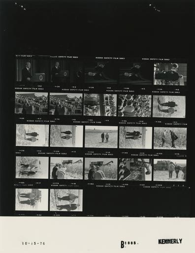 Keywords: Ford B1885 NLGRF photo contact sheet (1976-10-14)(Gerald Ford Library).jpg White House Photographic Office WHPO is housed at the Gerald R Ford Presidential Library a branch of the National Archives and Records Administration NARA <br/><br/> This file is a 200 dpi photo contact sheet having images from roll of film B1885 of the August 9 1974 - January 20 1977 Gerald R Ford White House Photographic Office Series A0001-A9999 and B0001-B2886 photographs <br/><br/> The date on the photo contact sheet is the date the roll of film was processed not necessarily the date the photographs were taken See table below for additional details 1976-10-14 Gerald R Ford Presidential Library Image http //www fordlibrarymuseum gov/library/whphotos/B1885_NLGRF jpg B1885_NLGRF jpg from http //www fordlibrarymuseum gov/library/whphotos/19761014whpo pdf White House Photographs October 14 1976 of the http //www fordlibrarymuseum gov/Library/whphotos/whpo asp White House Photographic Collection page White House Photographic Office WHPO <br/> Creator David Hume Kennerly PD-USGov Institution Institution Gerald R Ford Presidential Library Table wikitable sortable + Photo contact sheet B1885 U S President Ford Administration Gerald R Ford Library Frame s Tone Subject proper Subject generic Names Geographic Location Photographer Date - 1A-4A BW 38th Press Conference GRF at lectern speaking; various angles; close ups GRF Washington DC Old Executive Office Building OEOB -Room 450 Kennerly 1976-10-14 - 5A-8A BW Campaign Trip to Iowa; Speaking at Iowa State University - Ames Iowa GRF at lectern speaking; others seated; various angles and distances; all not in every frame GRF Media Crowd Ames IA Iowa State University - Iowa State Center -Outside Kennerly 1976-10-15 - 9A BW Campaign Trip to Iowa; Following Speech at Iowa State University - Ames Iowa greeting handshaking; GRF in middle of crowd GRF Crowd Secret Service Ames IA Iowa State University - Iowa State Center -Outside Kennerly 1976-10-15 - 10A-13A BW Campaign Trip to Iowa; Tour of Harvesting Operations at King Farm - Boone County Iowa walking talking in field; backs to camera; moving away from camera; 1 frame blank GRF Marshall King Boone County IA Marshall P King Farm Kennerly 1976-10-15 - 14A-19A BW Campaign Trip to Iowa; Tour of Harvesting Operations at King Farm - Boone County Iowa standing talking examining corn in last 5 frames; harvester in last 3 frames GRF Marshall King Boone County IA Marshall P King Farm Kennerly 1976-10-15 - 20A-22A BW Campaign Trip to Iowa; Tour of Harvesting Operations at King Farm - Boone County Iowa walking back toward camera; harvester in background in 1st 2 frames GRF Marshall King Boone County IA Marshall P King Farm Kennerly 1976-10-15 Gerald R Ford Presidential Library and Museum-cooperation PD-USGov Contact sheets by the Ford White House October 1976 Photographs by David Hume Kennerly from 1976 |